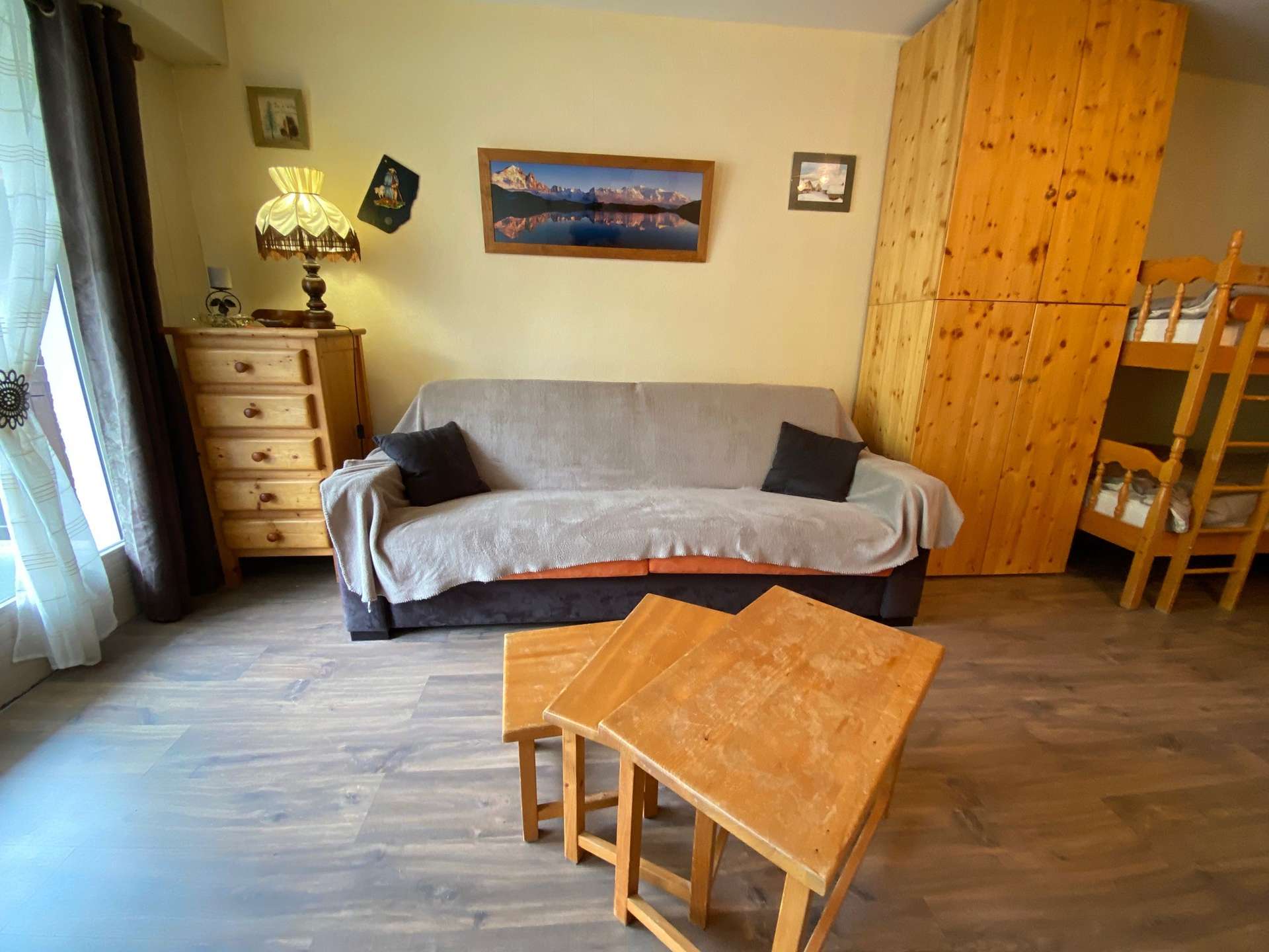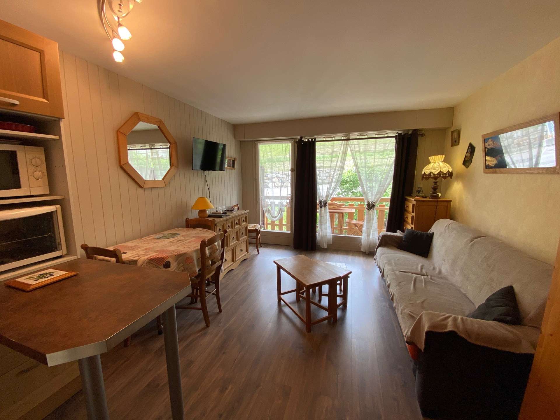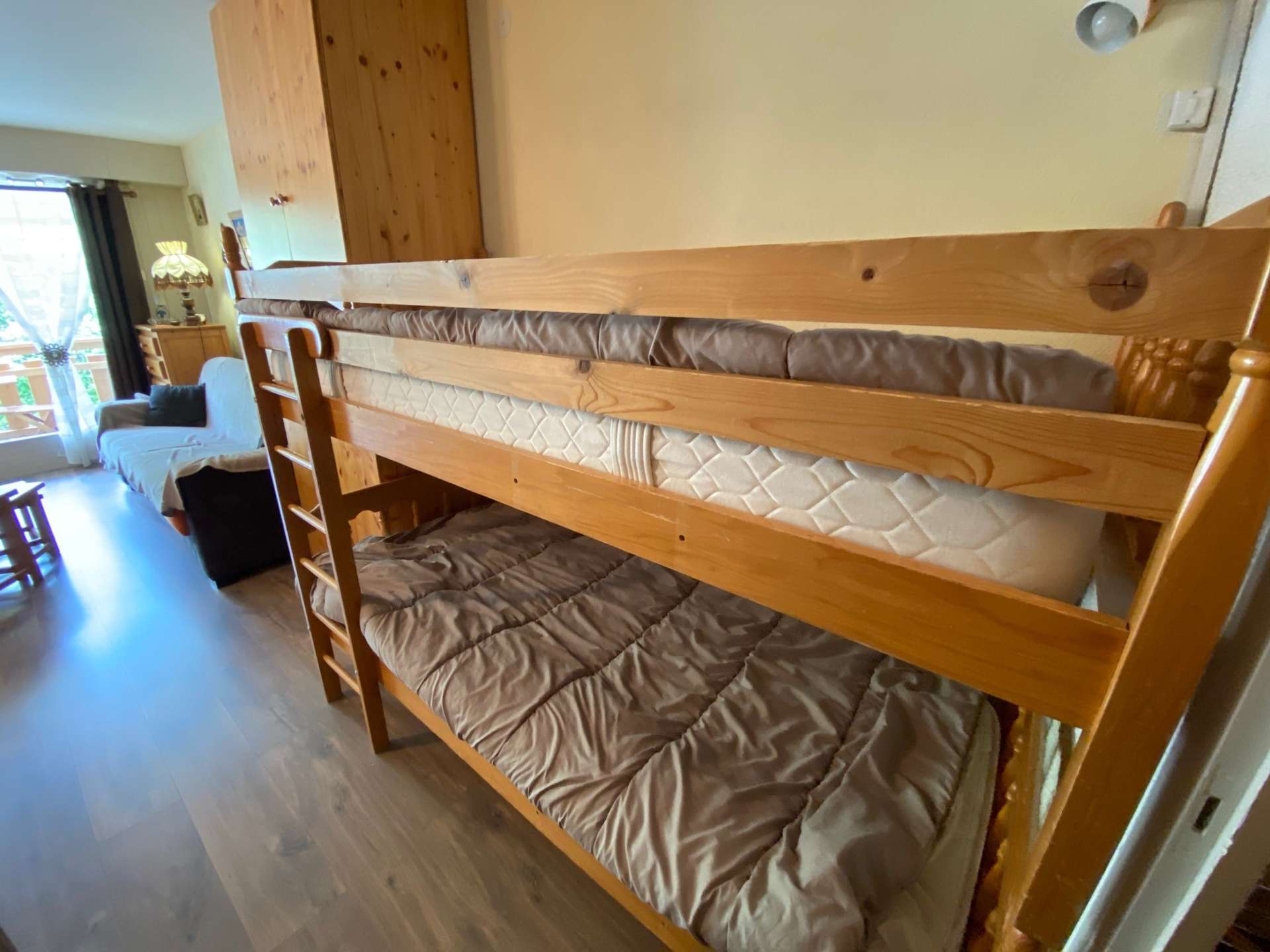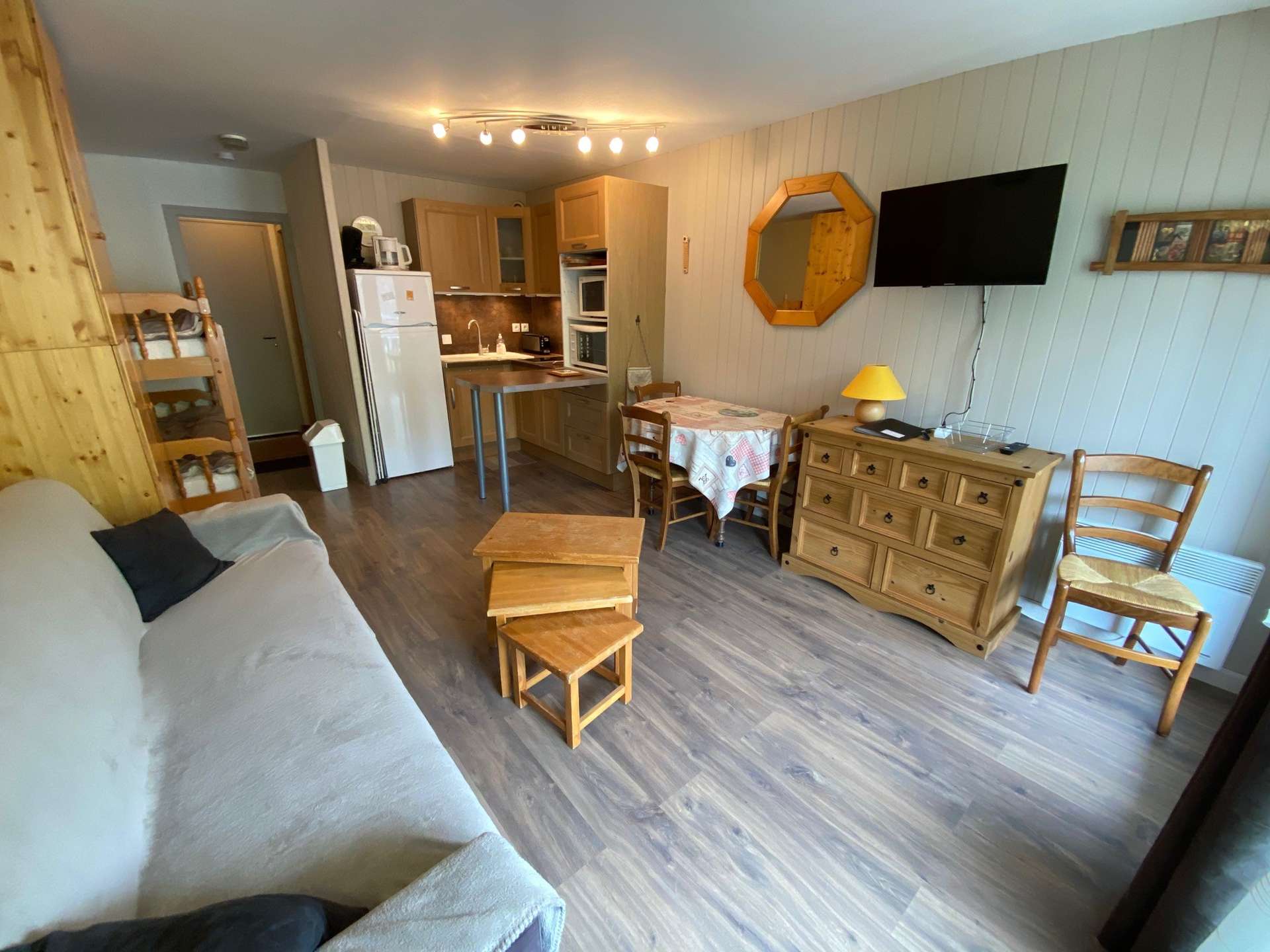 Cet appartement de vacances situé au 1er étage comprend un séjour avec un canapé convertible 2 personnes et télévision donnant accès à un balcon sud avec vue sur les pistes, un coin cuisine équipé, un coin montagne avec 2 lits superposés, une salle de bain avec WC. Casier à ski et parking de la résidence emplacement non défini.