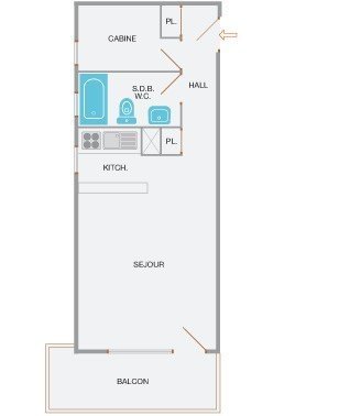 Pistes Chinaillon. Studio cabine. 4 pers.