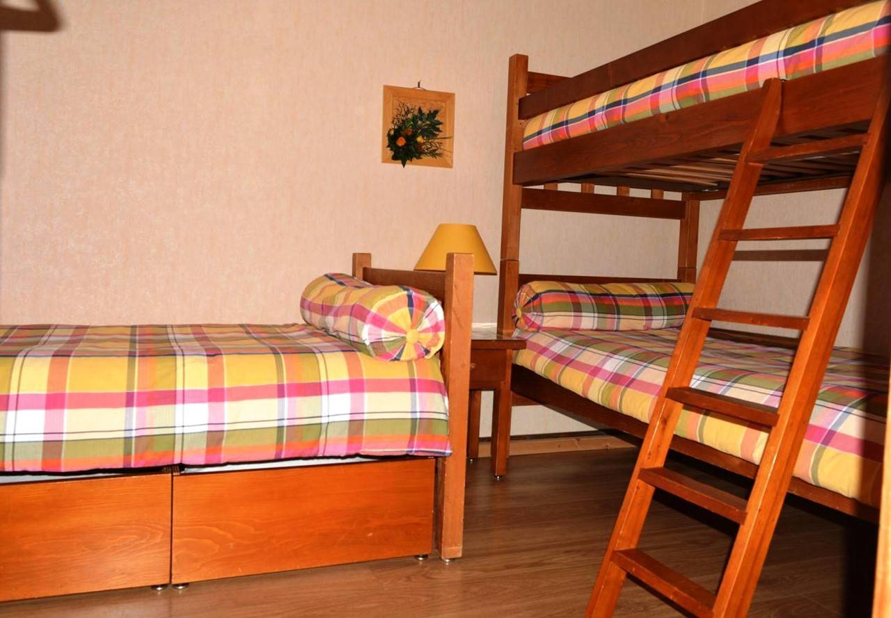Cet appartement de vacances au rez de jardin (2 étages à descendre) comprend un séjour avec canapé convertible 2 personnes, cheminée décorative et télévision, un coin cuisine équipé avec lave-vaisselle, une chambre avec 2 lits superposés et un lit 1 personne avec accès sur grande terrasse ensoleillée, une salle de bain avec lave-linge et un WC indépendant.