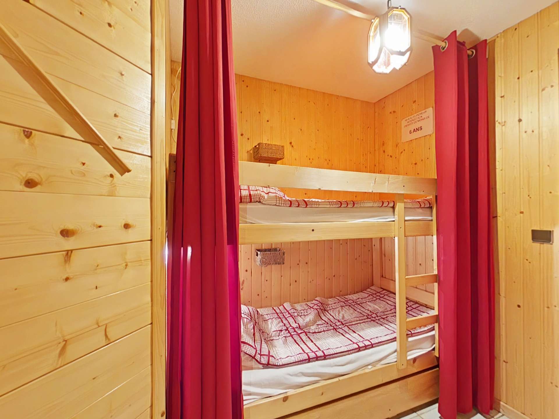 Cet appartement de vacances situé en rez de jardin (1 étage à descendre) comprend un séjour avec un canapé, un coin repas, une télévision, une kitchenette, une chambre avec un lit double, un coin nuit avec 2 lits superposés, une salle de bains avec lave-linge et un WC indépendant.