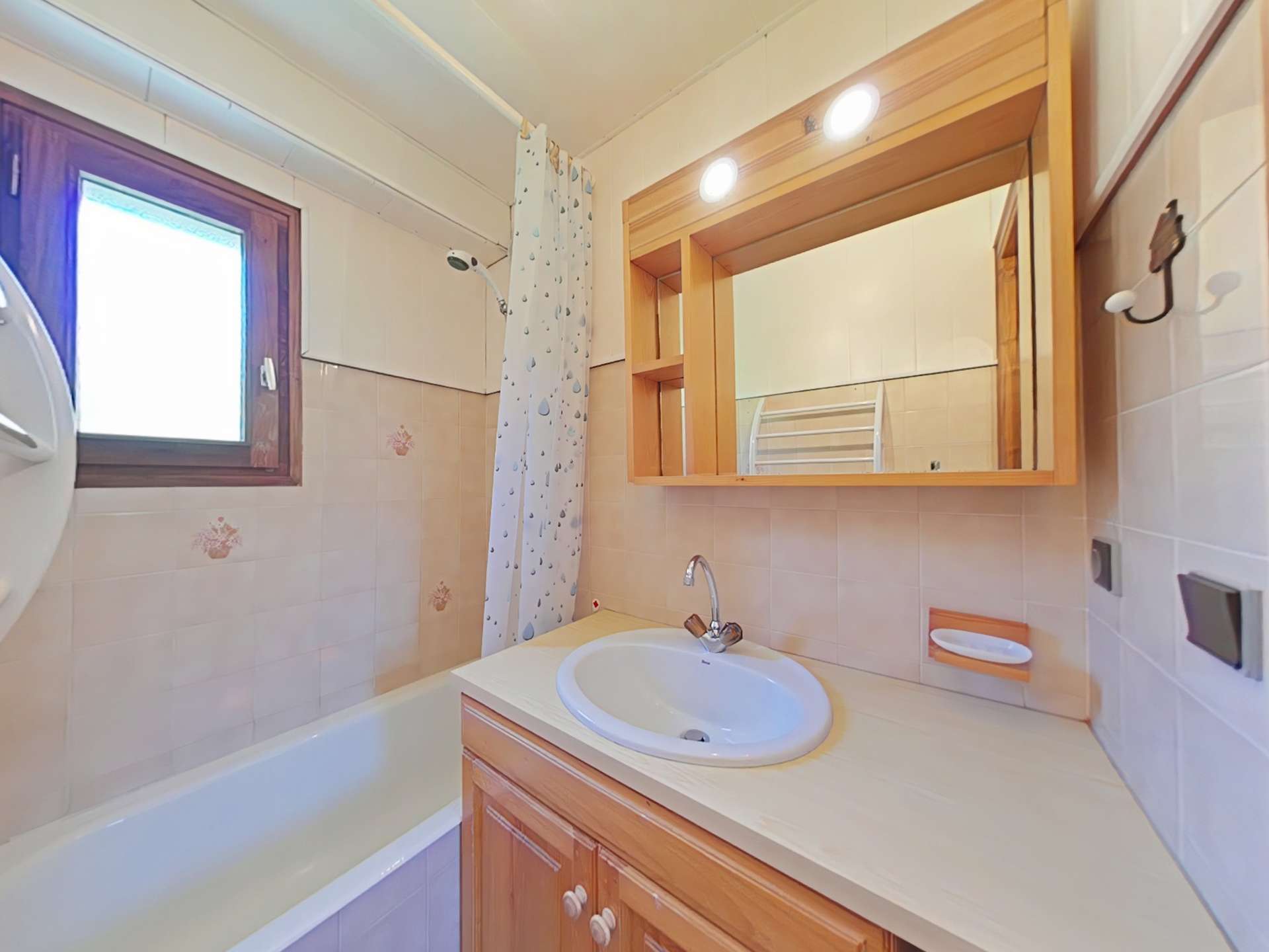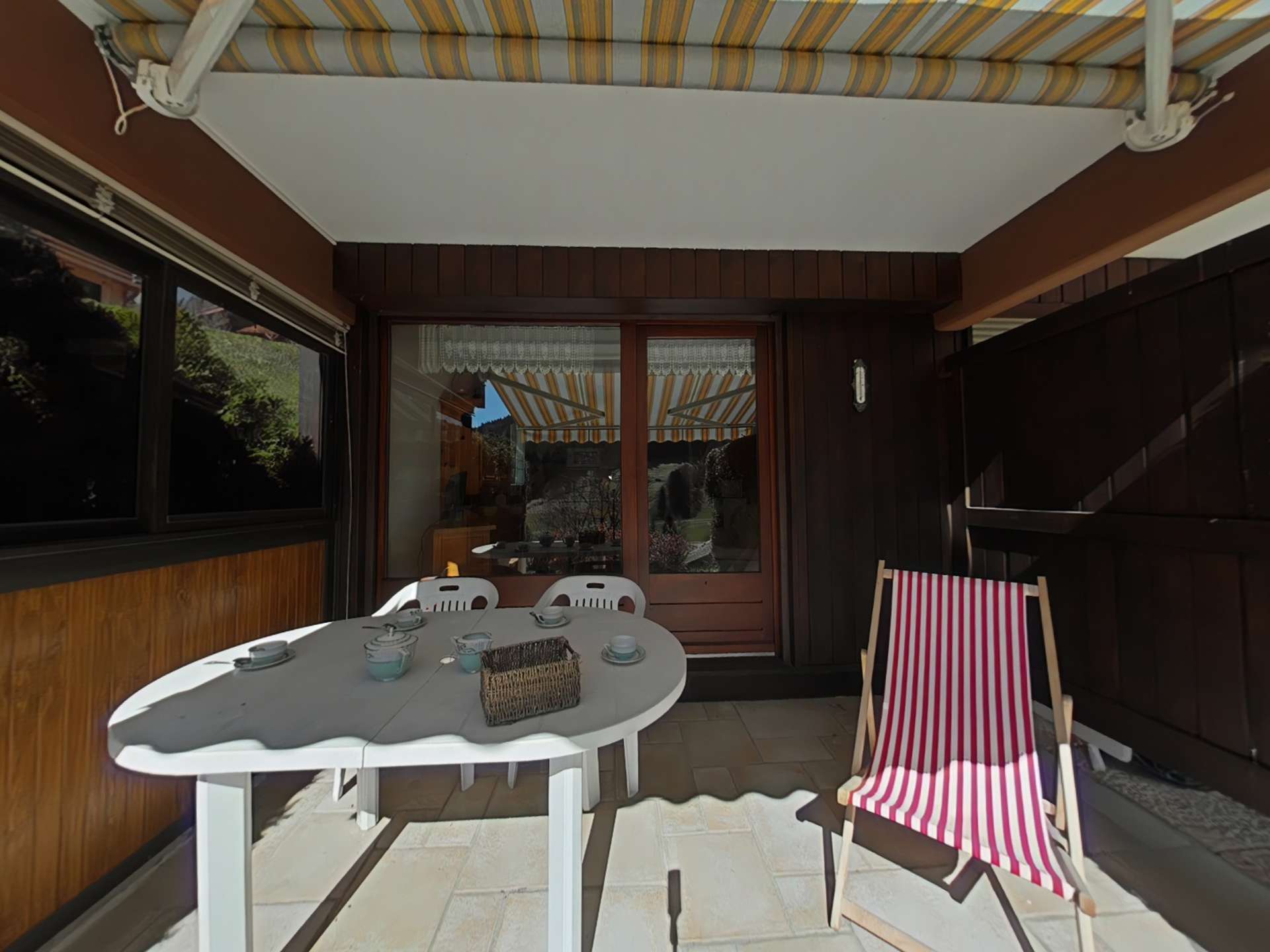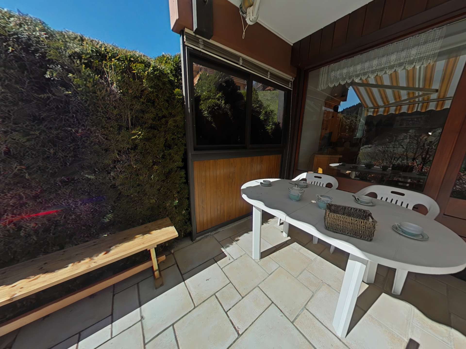 Les Plus de cette location à la montagne : Garage, très ensoleillé, vue sur les montagnes et le village, télécabine à 1000 m.