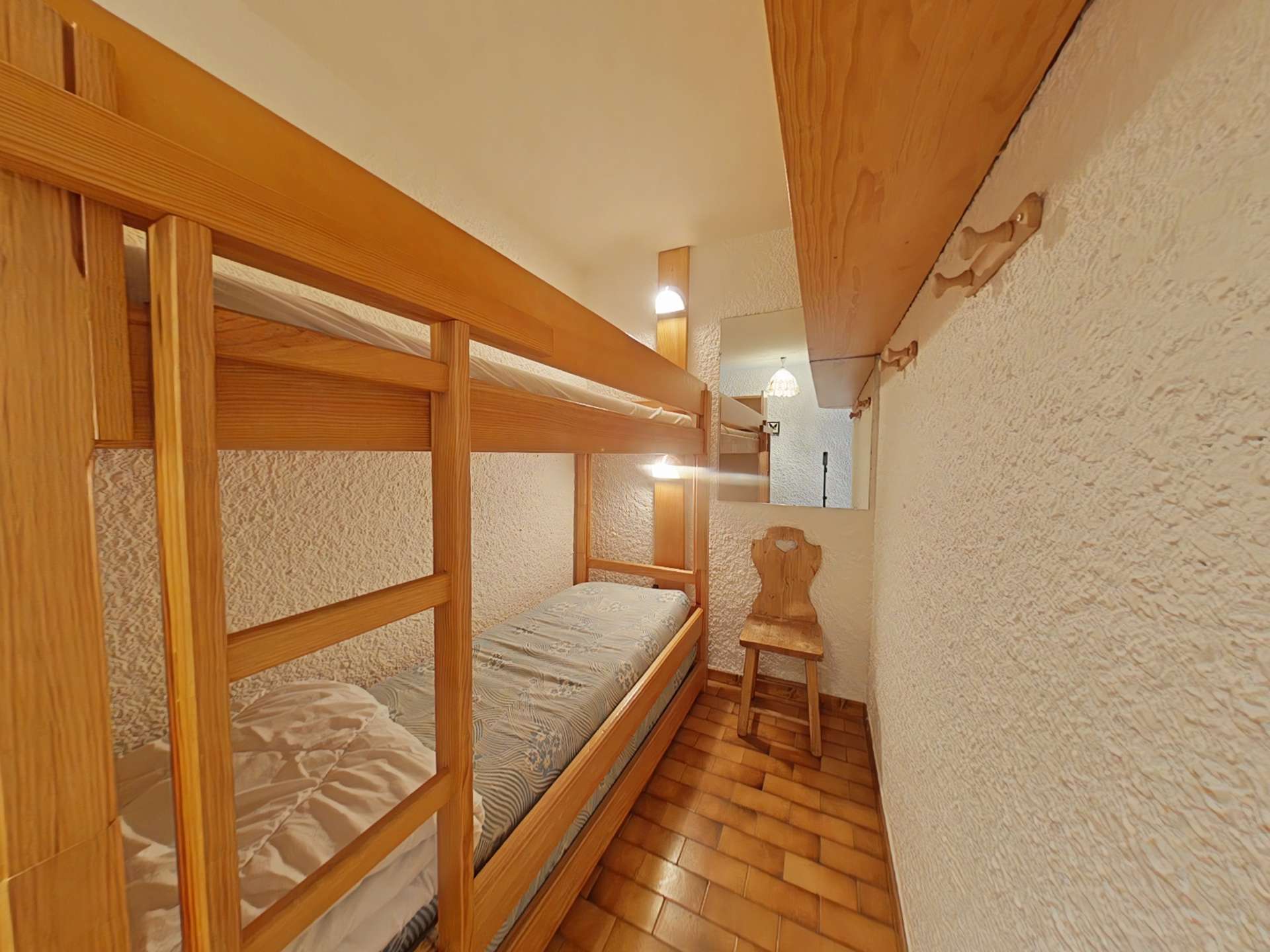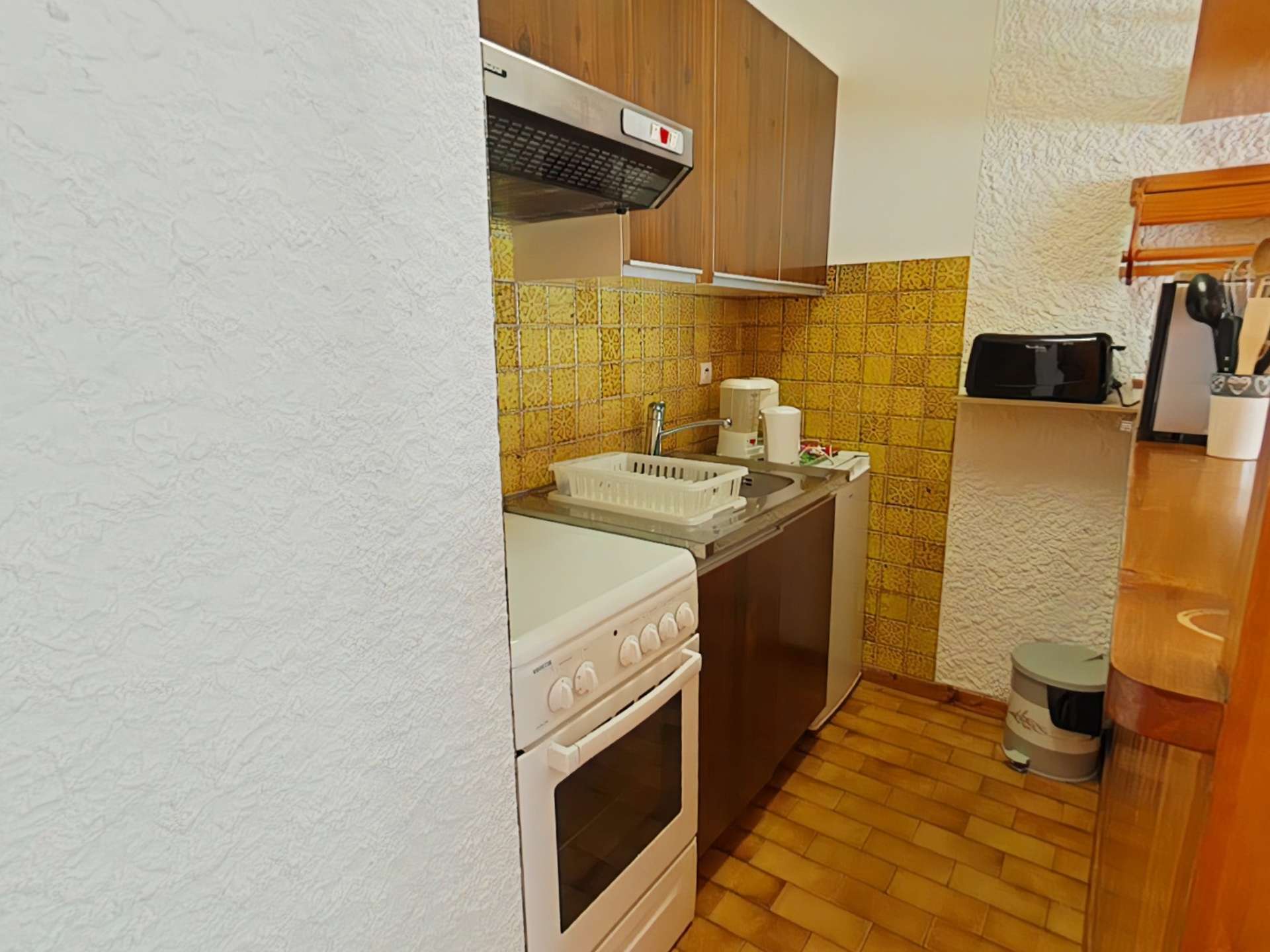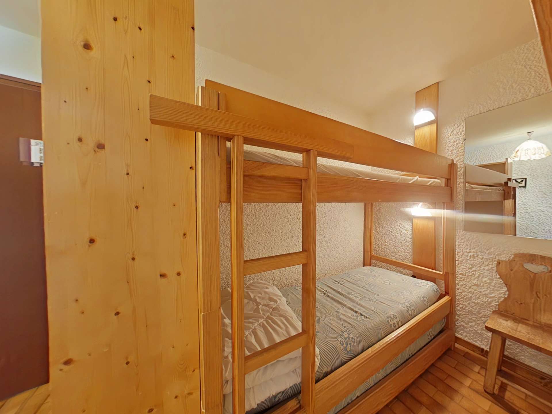 Cet appartement de vacances situé au 1er étage avec ascenseur, comprend un séjour avec canapé convertible 2 personnes et télévision, un coin cuisine équipé, un coins montagne avec deux lits superposés, une salle de bains avec WC.