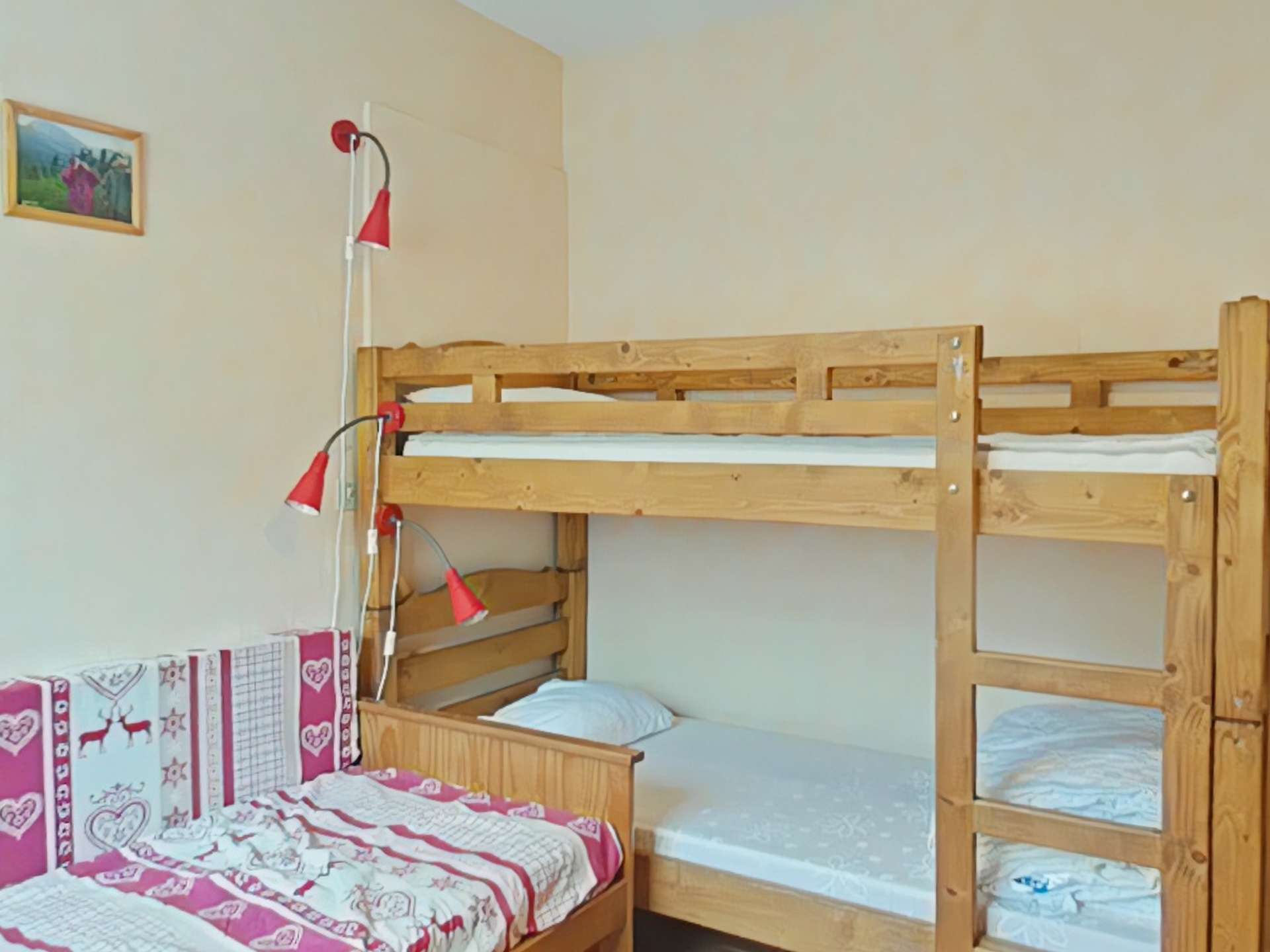Cet appartement de vacances situé au 2ème étage avec ascenseur, comprend un séjour avec canapé BZ convertible 2 personnes et télévision, une cuisine équipé, une grande chambre avec un lit de 2 personnes et placards, une chambre avec deux lits superposés, une salle de bains, WC séparé. Pas de casier de à ski pas de place de stationnenemt à la résidence