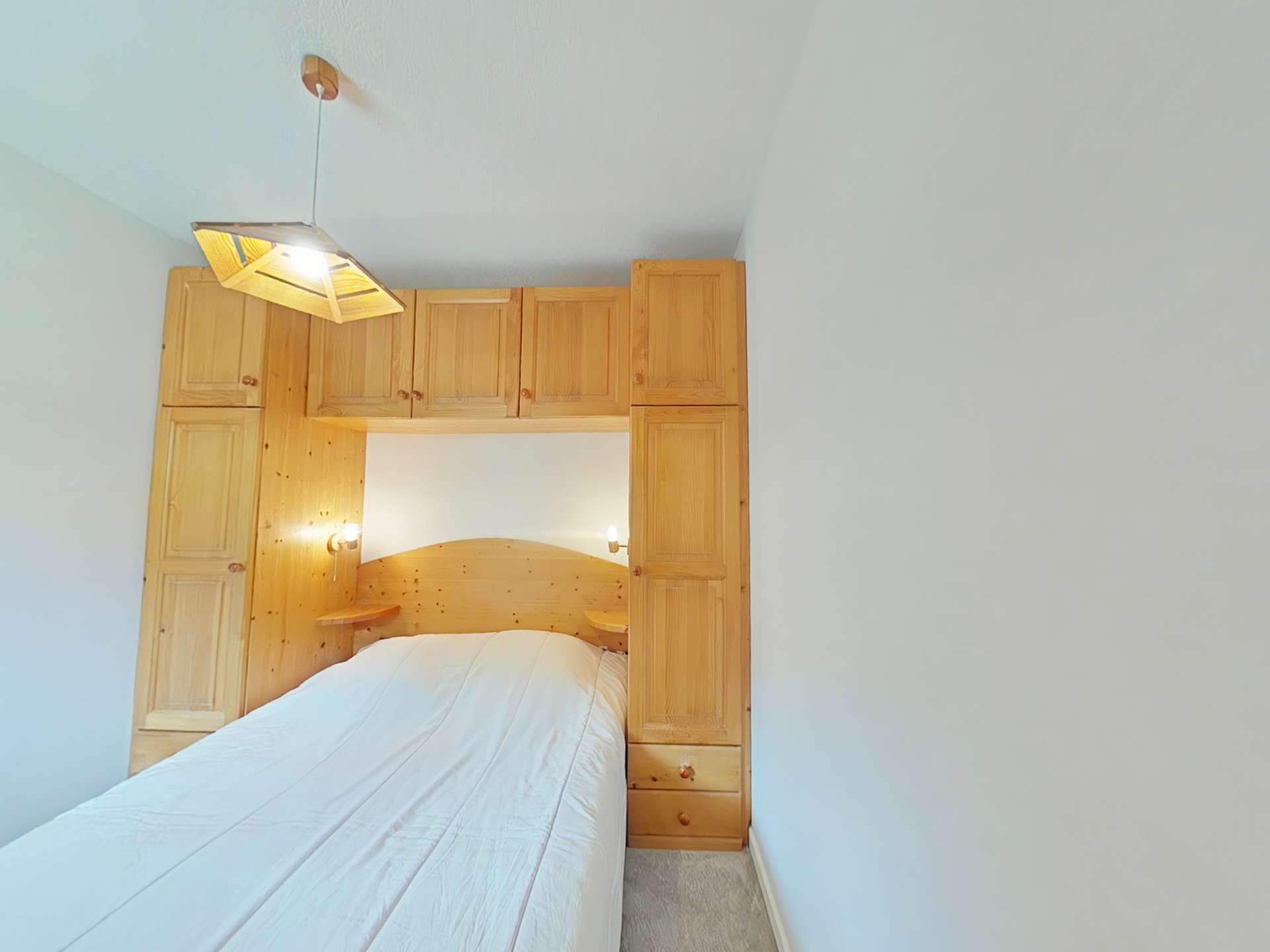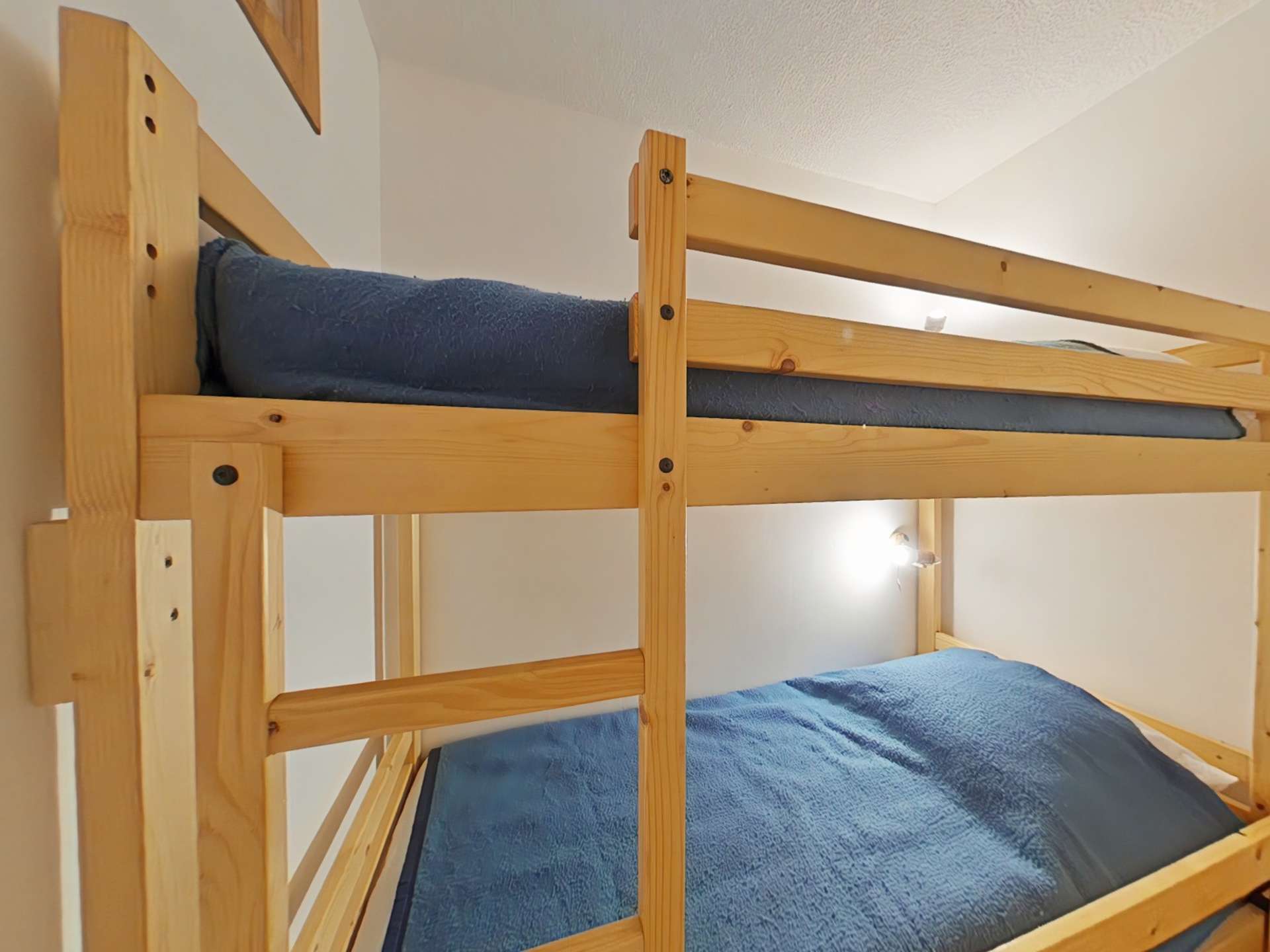 Cet appartement de vacances, au 2ème étage, comprend un séjour avec coin repas, un canapé convertible 2 places et télévision, un coin cuisine équipé d'un lave-vaisselle, 1 chambre avec un lit 2 personnes, un coin montagne avec deux lits superposés, une salle de bains et un WC indépendant.