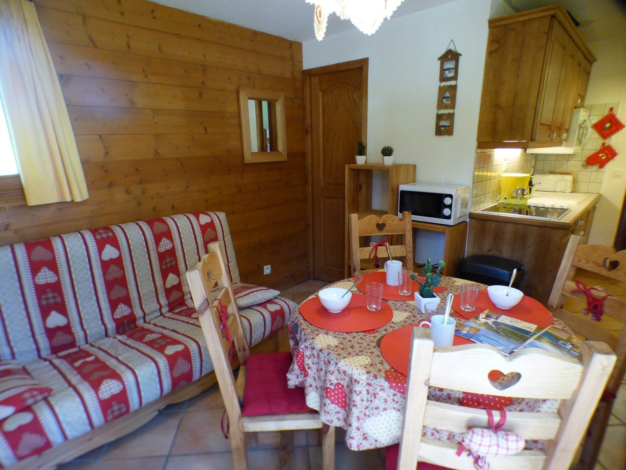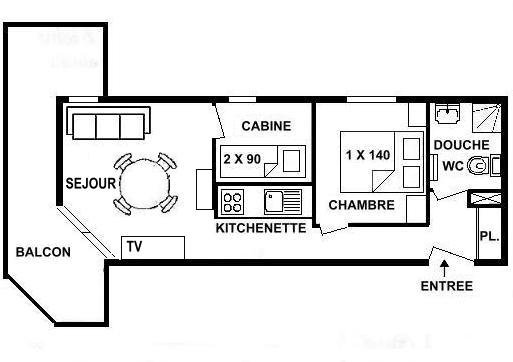 L'appartement se compose d'un séjour ( le canapé n'est pas un couchage), d'une kitchenette équipée, d'une chambre avec un lit 140, d'une cabine avec lits superposés 2x90 (NB: le lit supérieur d'un lit superposé est interdit aux - de 6 ans) et d'une salle d'eau avec WC non séparé.