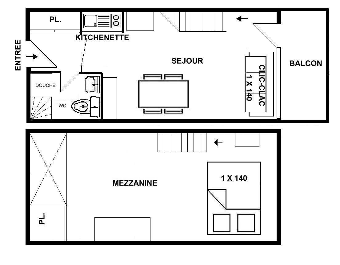Appartement studio mezzanine au 3ème étage de la résidence (2 étages à monter), orienté sud, avec balcon.