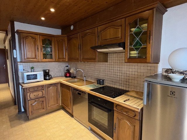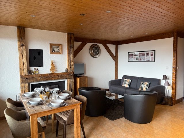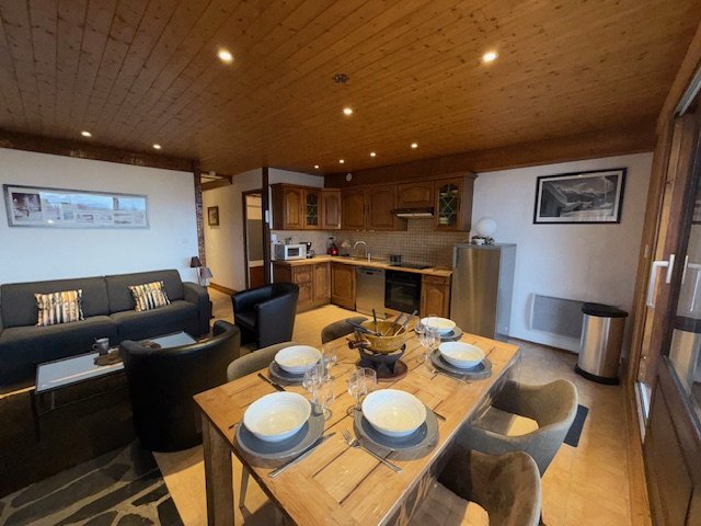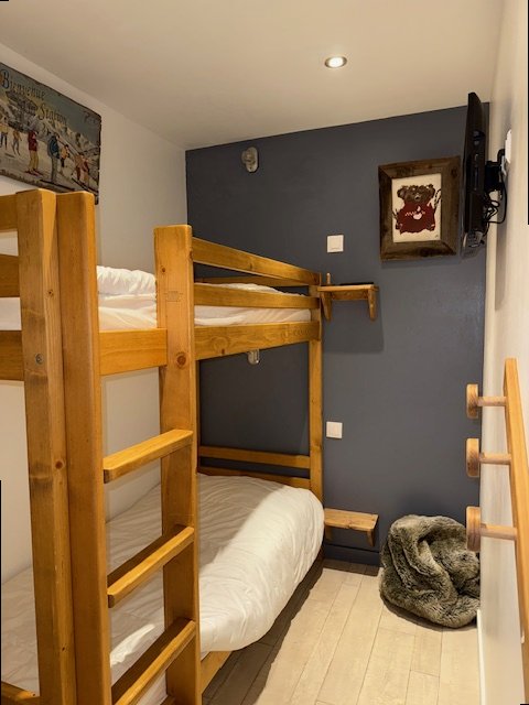 L'appartement se compose d'une kitchenette équipée ouverte sur séjour avec canapé RAPIDO 140, d'une chambre avec un lit 140, d'une alcôve avec lits superposés 90 (NB: le lit supérieur d'un lit superposé est interdit aux - de 6 ans), d'une salle de bain et d'un wc séparé.