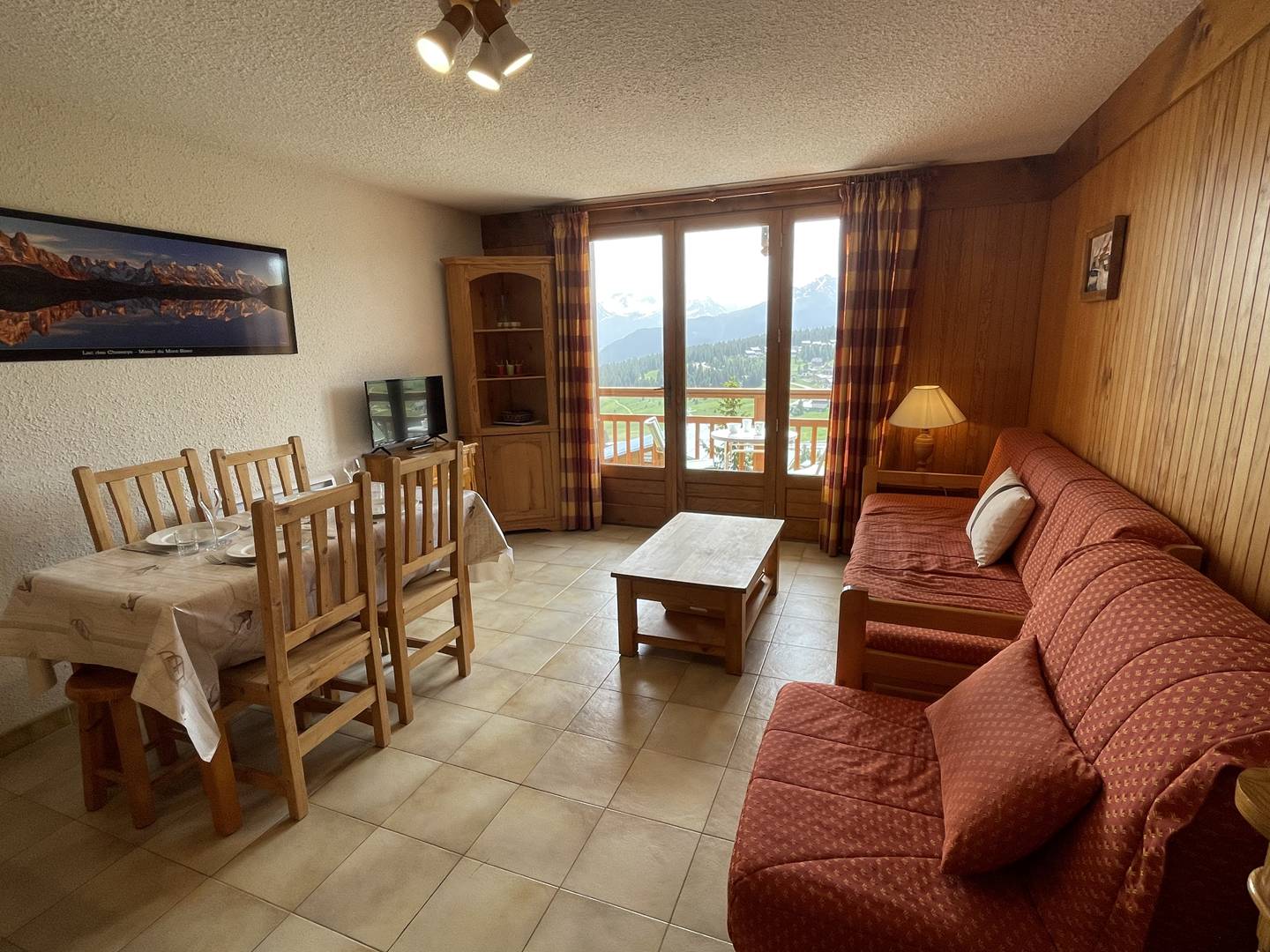 De plain pied, l'appartement équivaut à un 1er étage et bénéficie ainsi d'une très belle vue sur le Massif du Beaufortain et le Mont Bisanne.