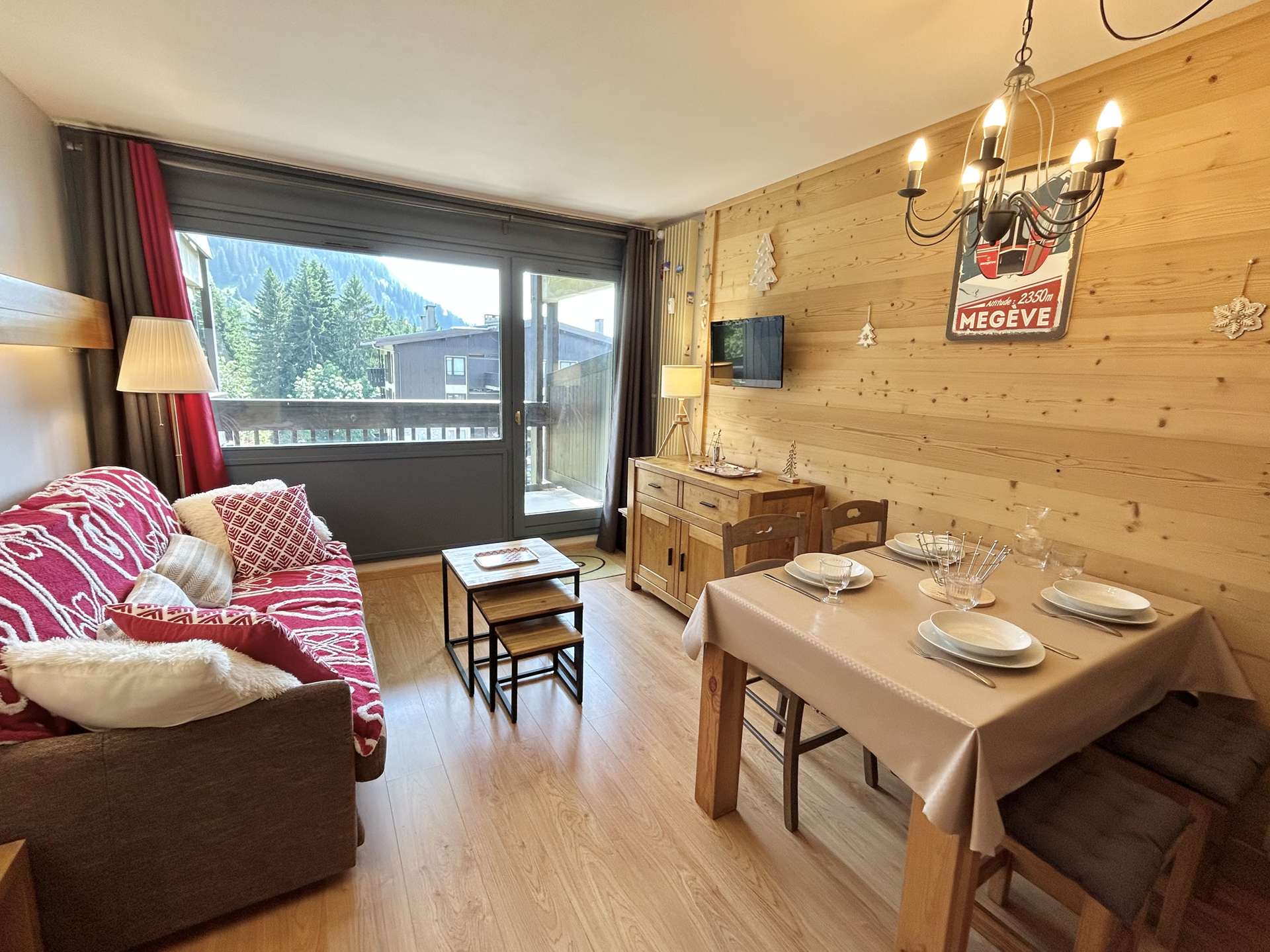 Située sur les hauteurs de Megève, cette résidence bénéficie d’un cadre calme avec une belle vue dégagée. Elle se trouve à 1 km du village, à 800 m du téléphérique de Rochebrune et à 700 m des premiers télésièges.