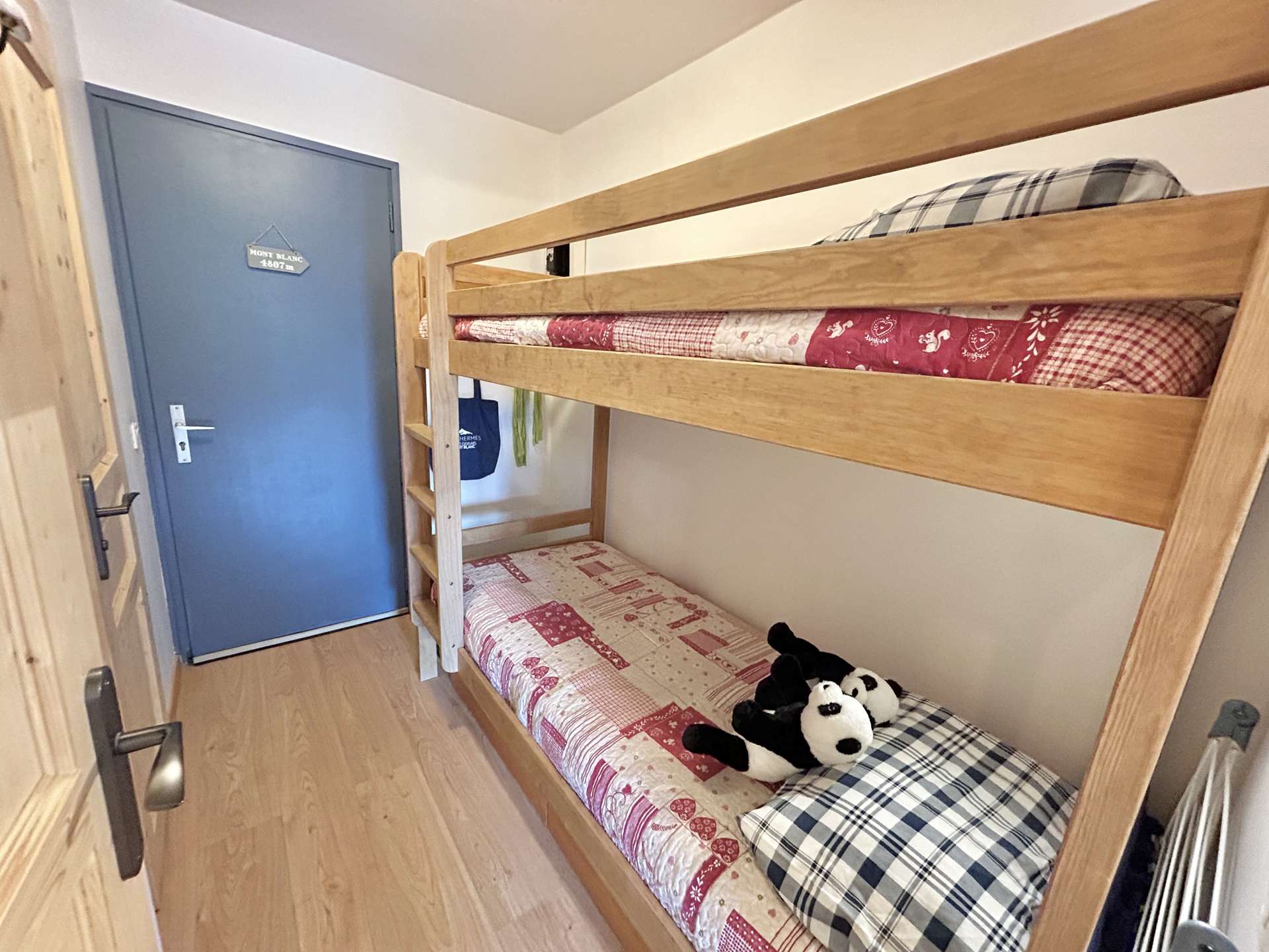 L’appartement est situé au 2? étage sans ascenseur. Il se compose d’une entrée avec deux lits superposés (90 cm) — le lit supérieur ne convient pas aux enfants de moins de 6 ans —, d’une salle de bains avec WC, d’une cuisine équipée ouverte sur le séjour avec un canapé-lit deux places (140 cm), une télévision et un accès à un balcon exposé sud-ouest.