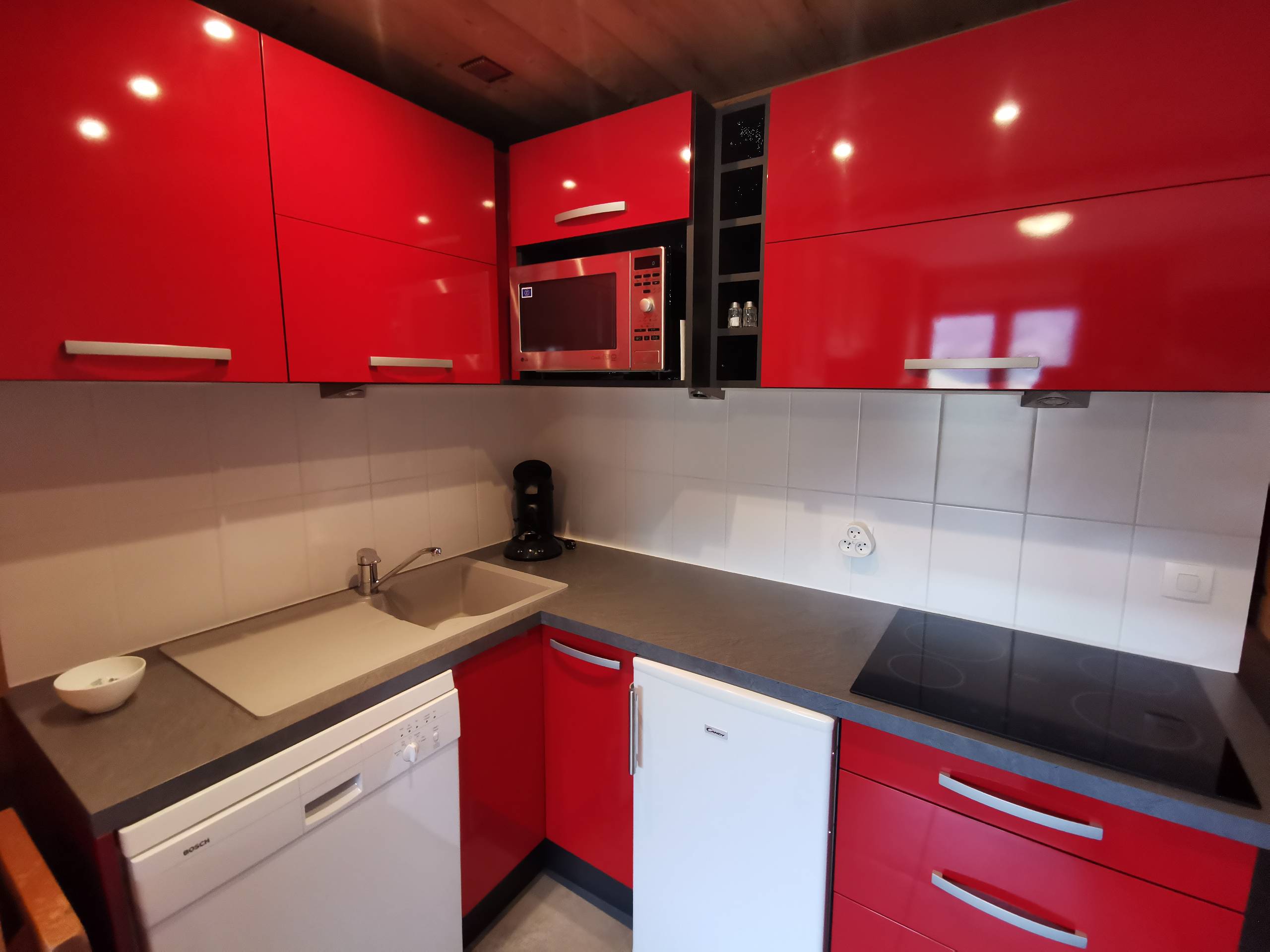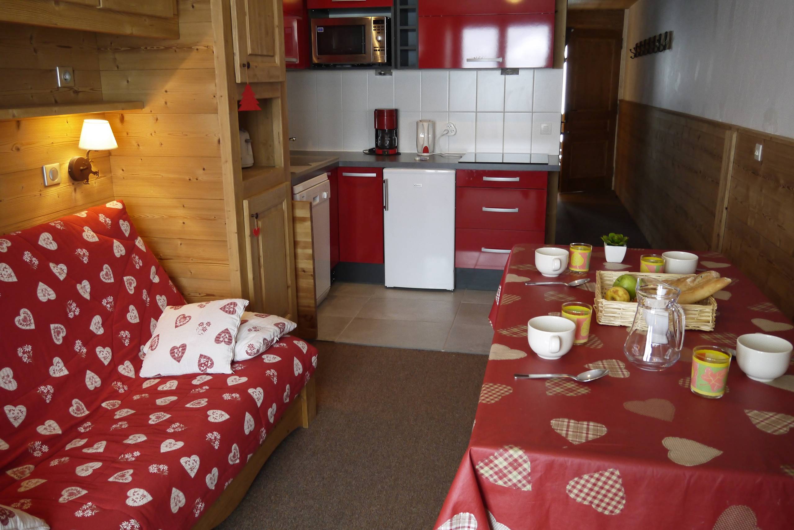 Chambre avec un lit double (140x200). Suite aux rénovations, cet appartement a obtenu le LABEL MERIBEL. Kitchenette avec plaques vitrocéramiques, lave vaisselle, four mixte, réfrigérateur cafetière à filtre et Senseo. Salle de douche et WC séparés. Casier à skis et ascenseur dans la résidence. Appartement non-fumeur / Animaux non admis.