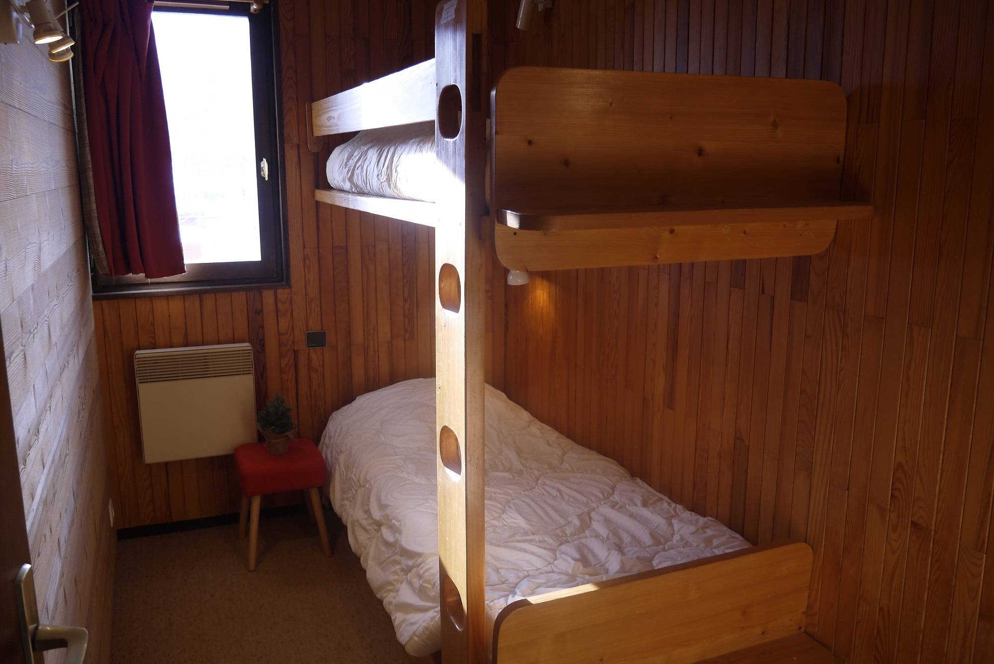 Séjour avec canapé convertible (160x190). Chambre avec un ensemble de lits superposés et un lit tiroir (80x190). Cuisine indépendante équipée de plaques de cuisson, four, lave vaisselle, réfrigérateur, grille pain et cafetière. Salle de bains et wc séparés. Télévision. Balcon exposé Sud. Casier à skis et ascenseur dans la résidence. Appartement situé au 8ème étage. Appartement non-fumeur / Animaux non admis