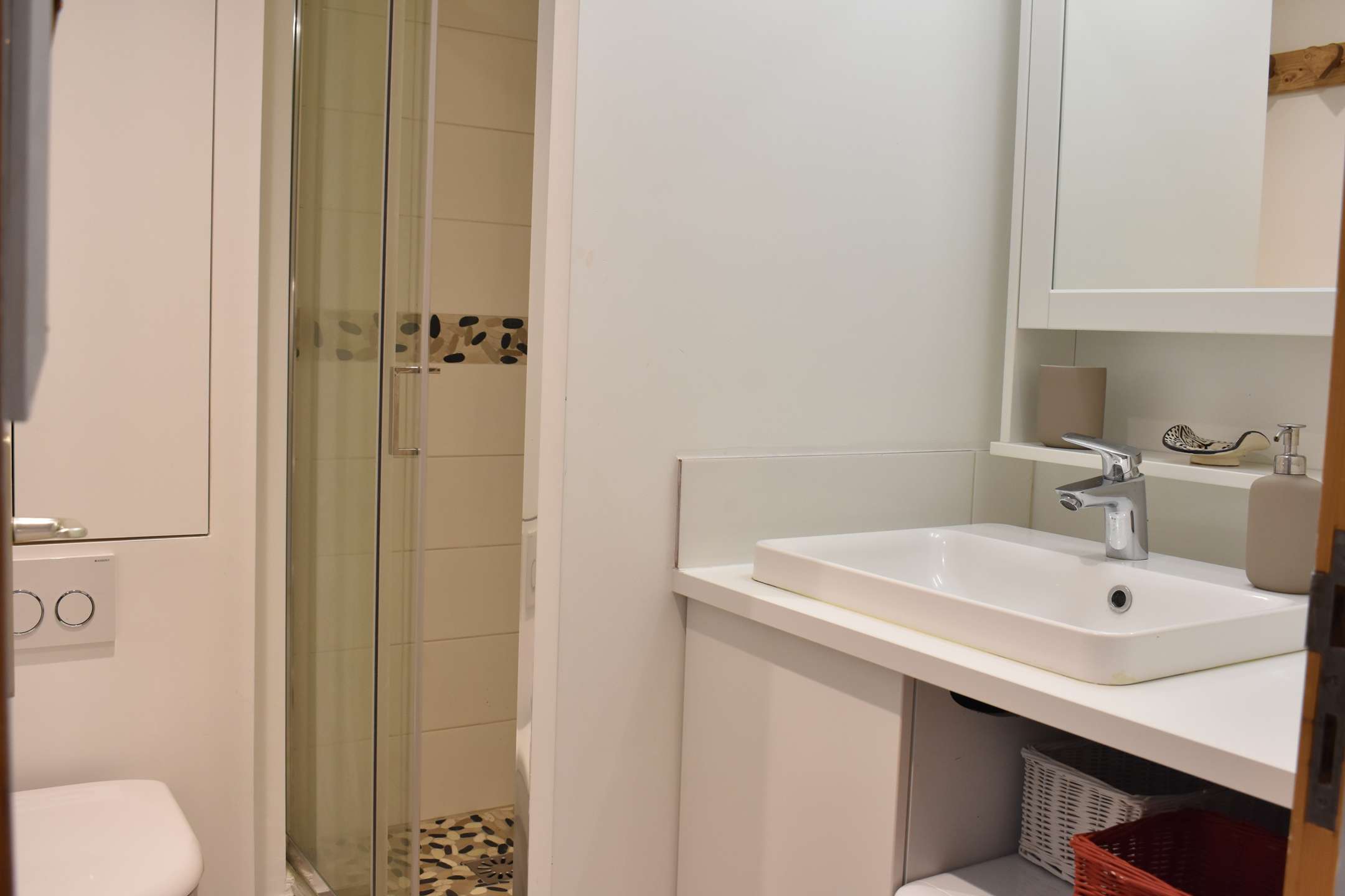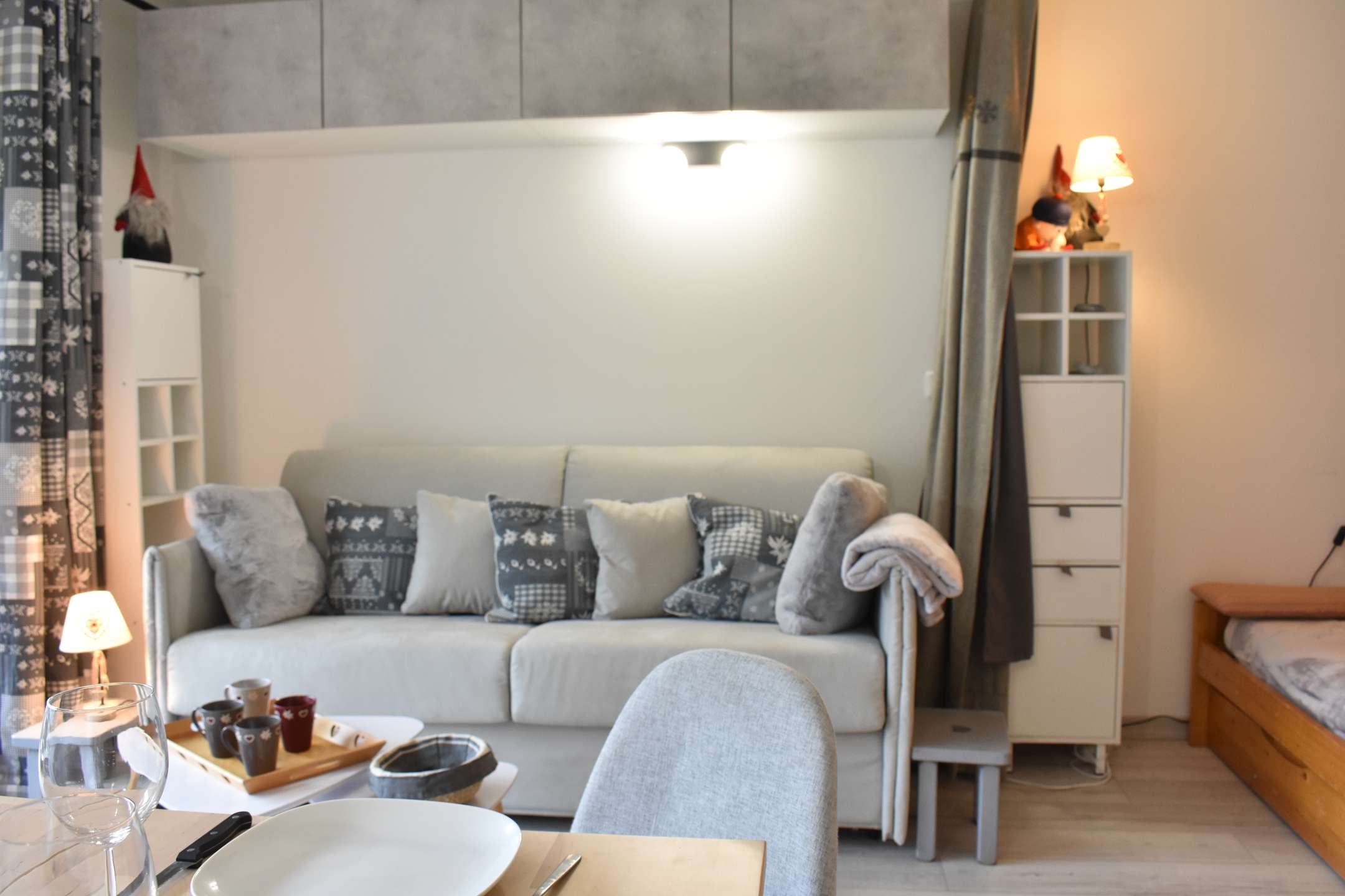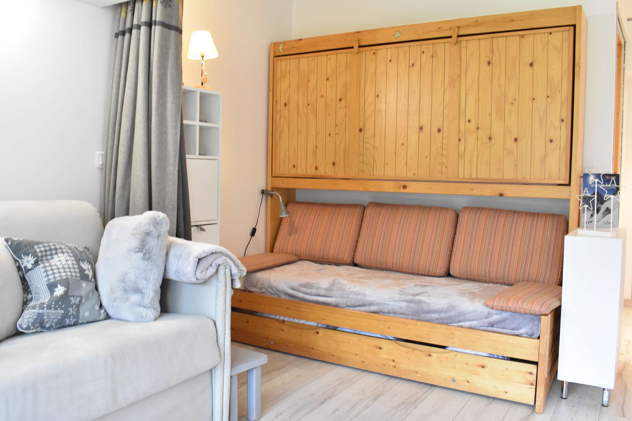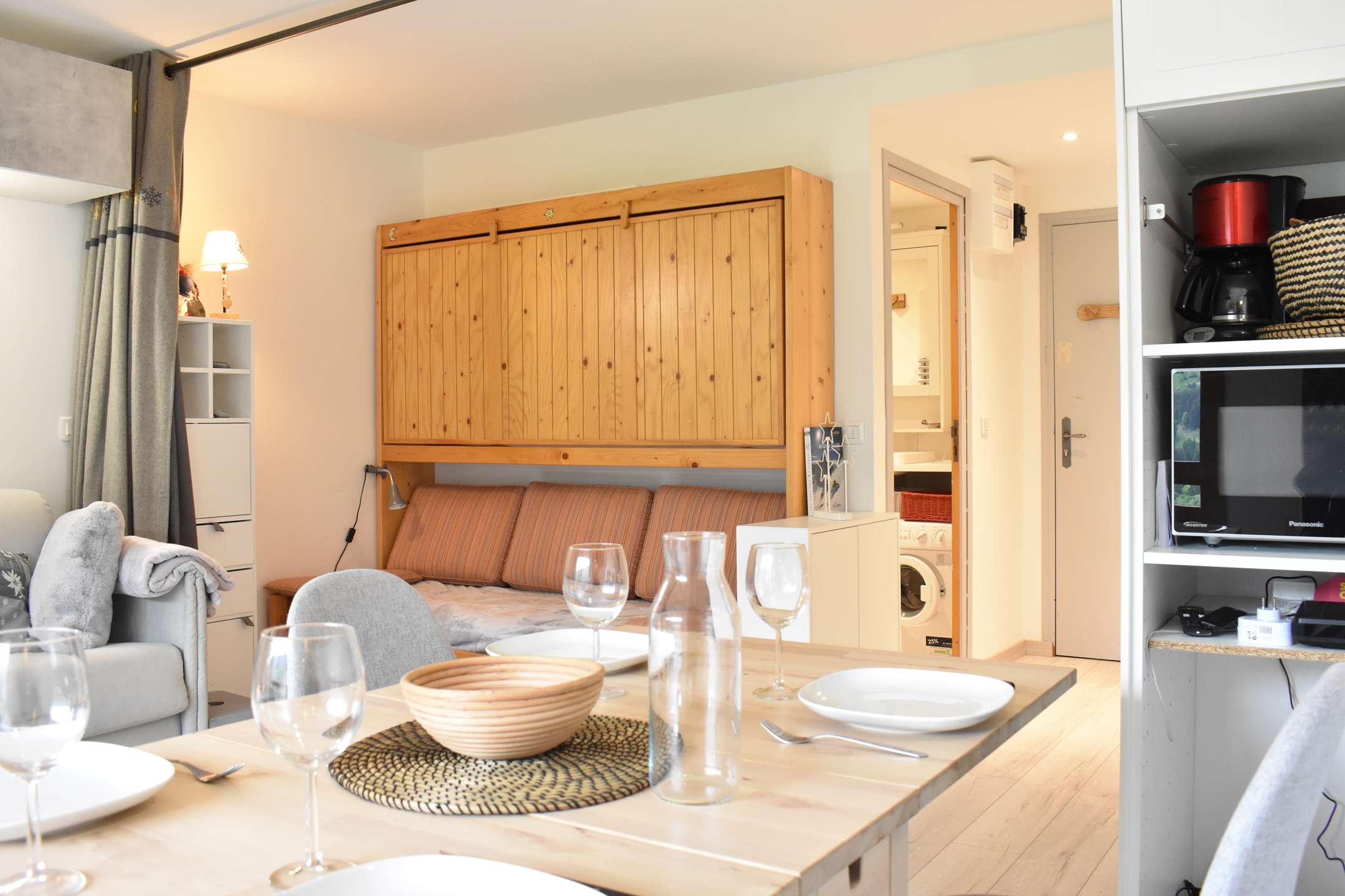 Cet appartement studio est situé au RDC par ascenseur. Il comprend une cuisine moderne bien équipée ouverte sur le séjour avec télévision, un canapé lit en 160 et un lit 1 personne donnant sur un loggia ouest, une salle d'eau avec toilettes disposant d'un lave-linge.