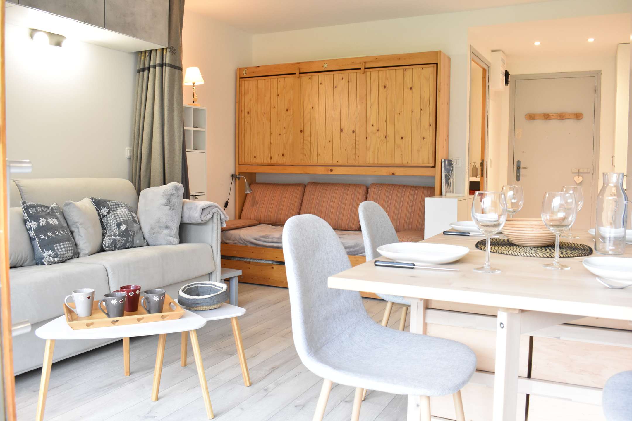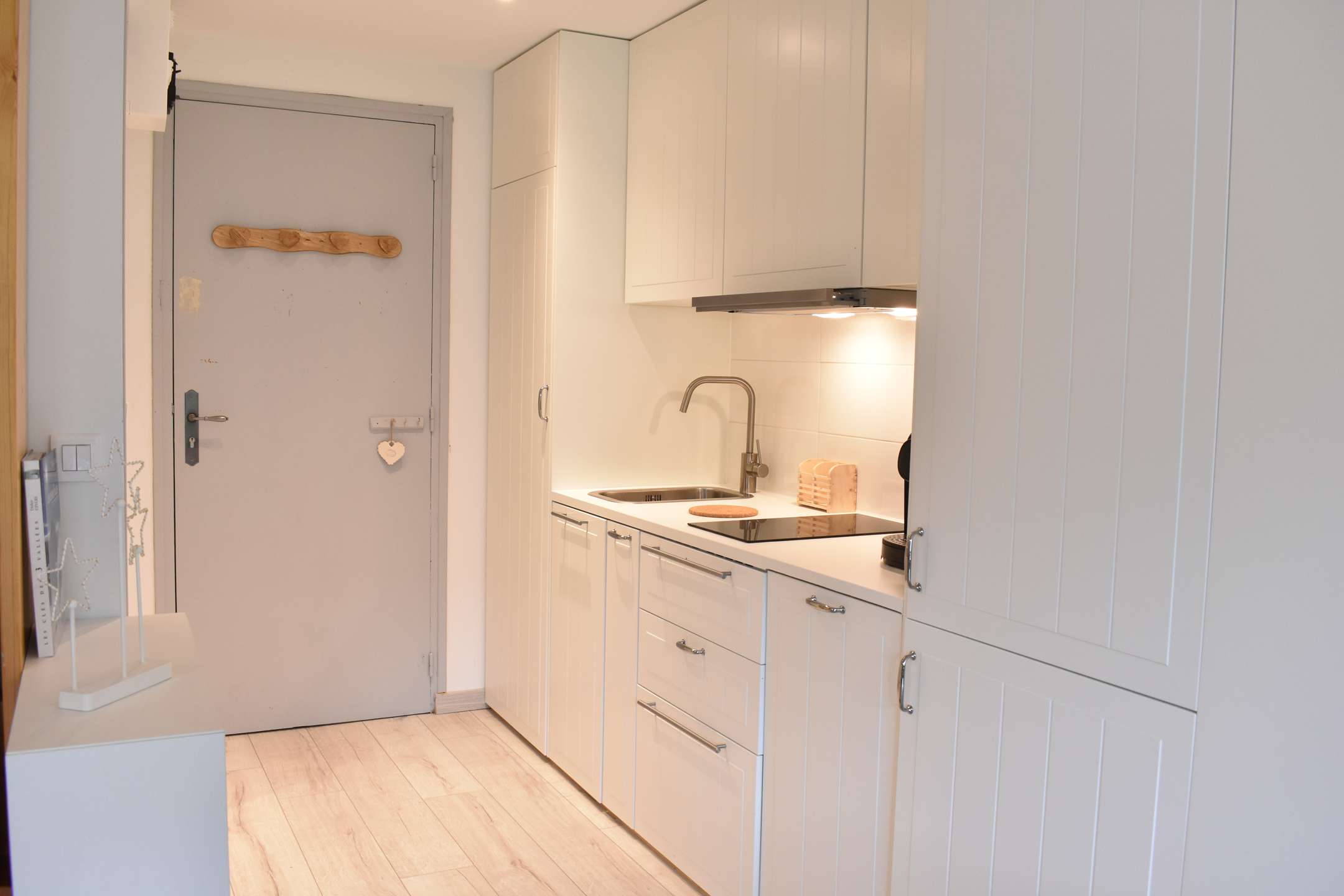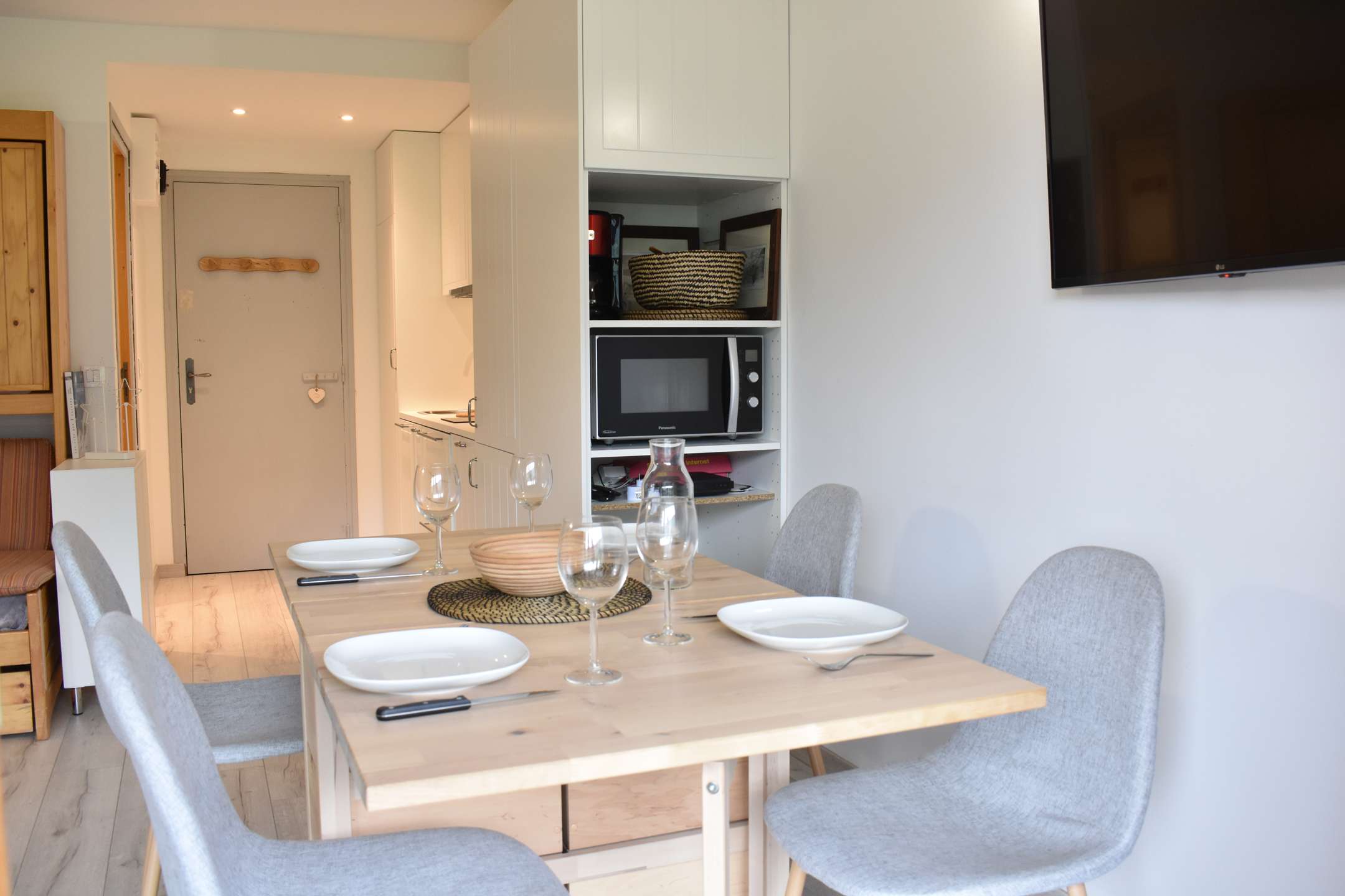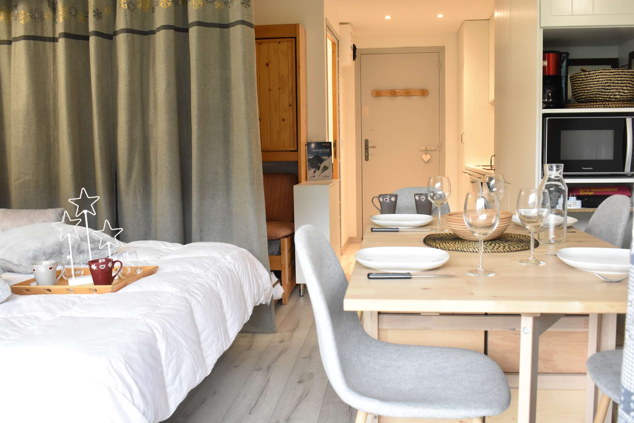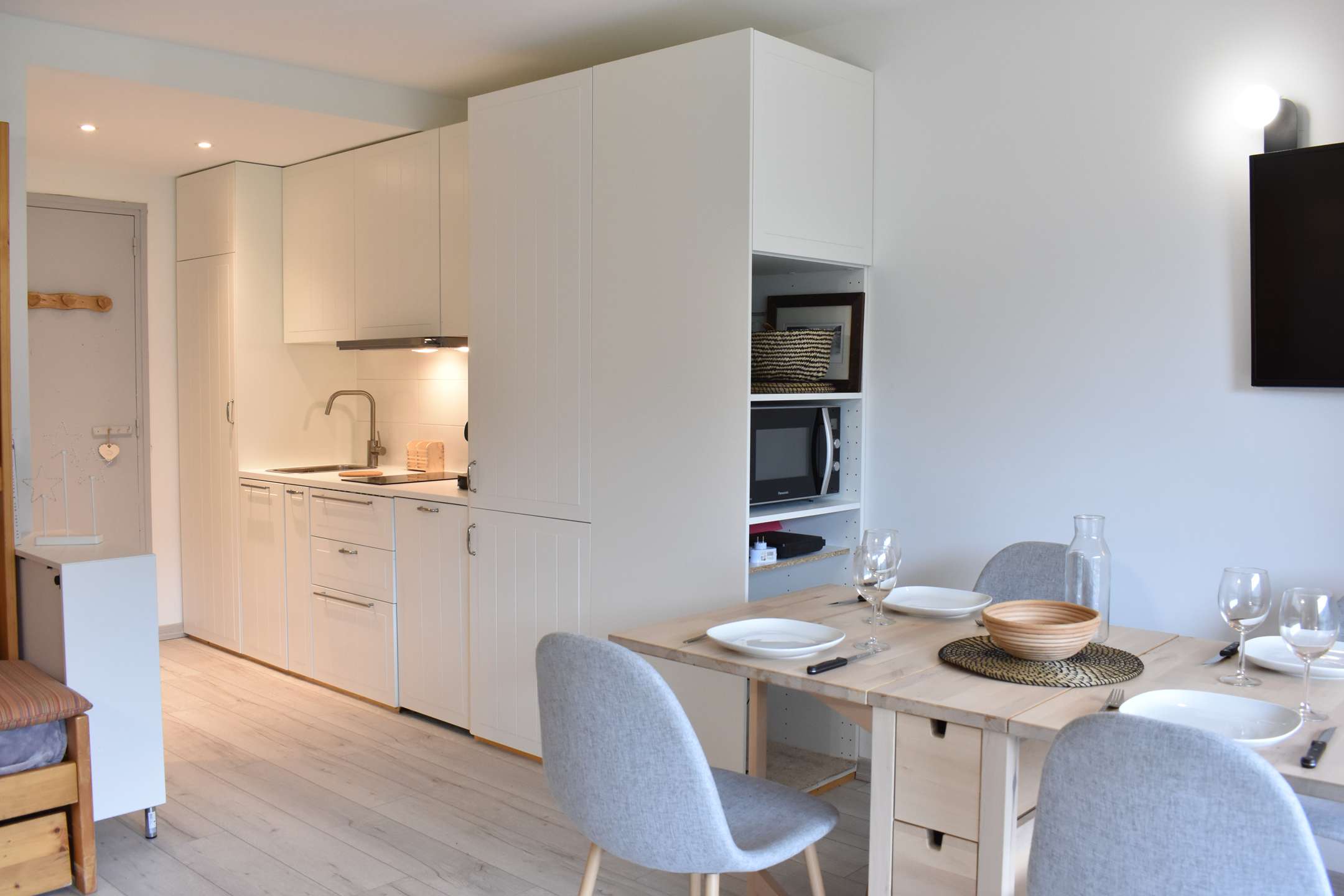 Cet appartement studio est situé au RDC par ascenseur. Il comprend une cuisine moderne bien équipée ouverte sur le séjour avec télévision, un canapé lit en 160 et un lit 1 personne donnant sur un loggia ouest, une salle d'eau avec toilettes disposant d'un lave-linge.