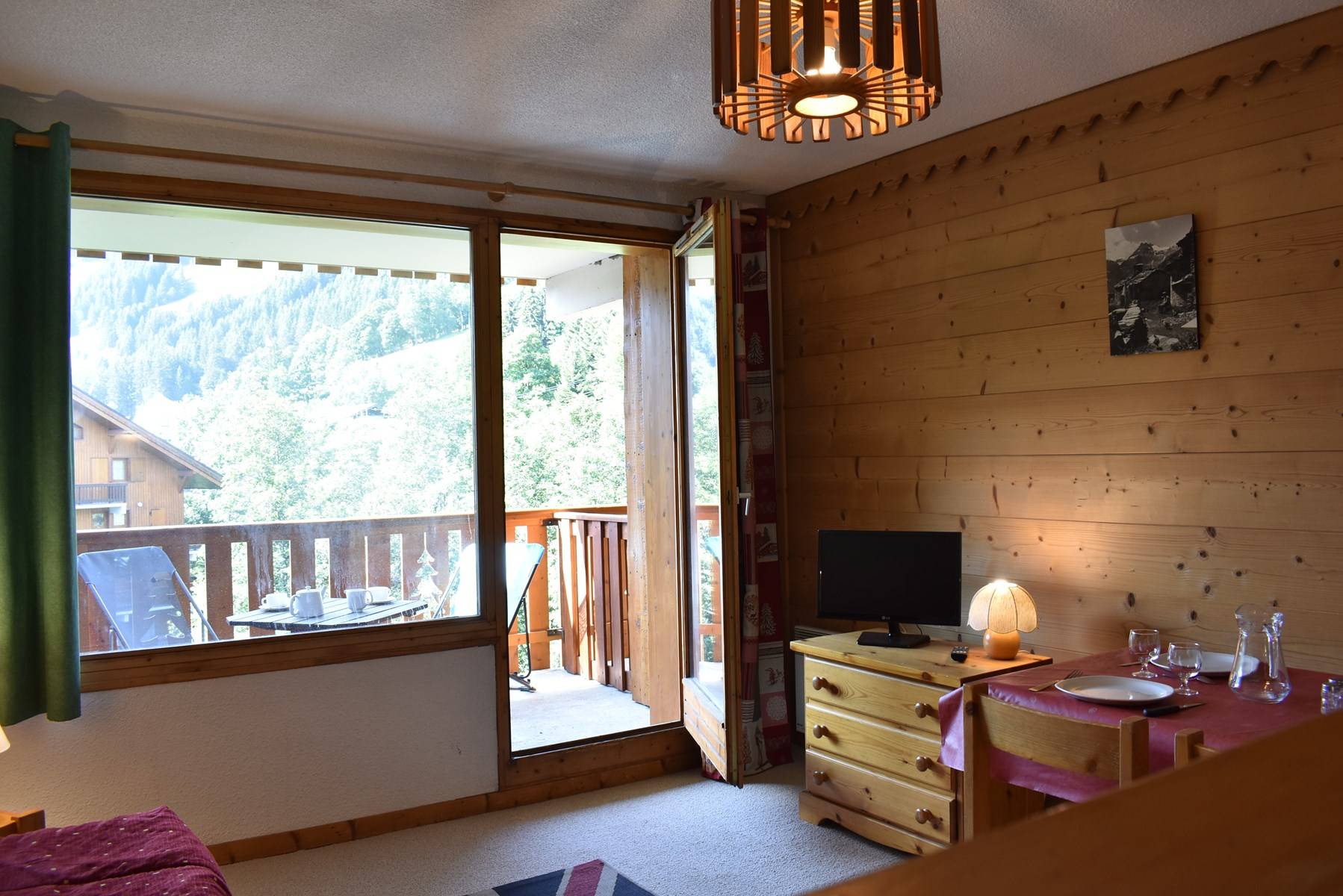 Les plus de cet appartement de vacances : un balcon avec salon de jardin exposé sud et vue sur les montagnes, un casier à ski.