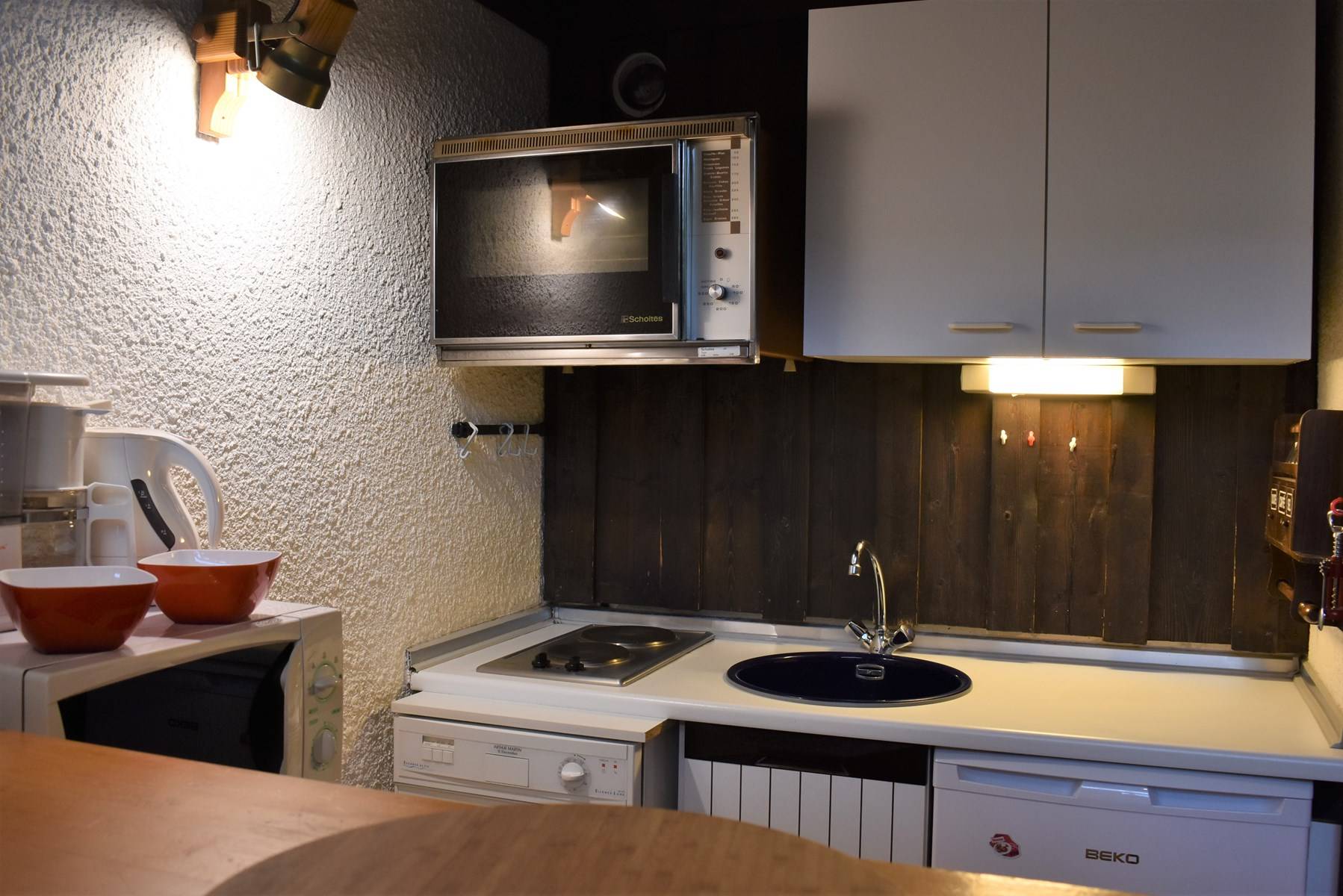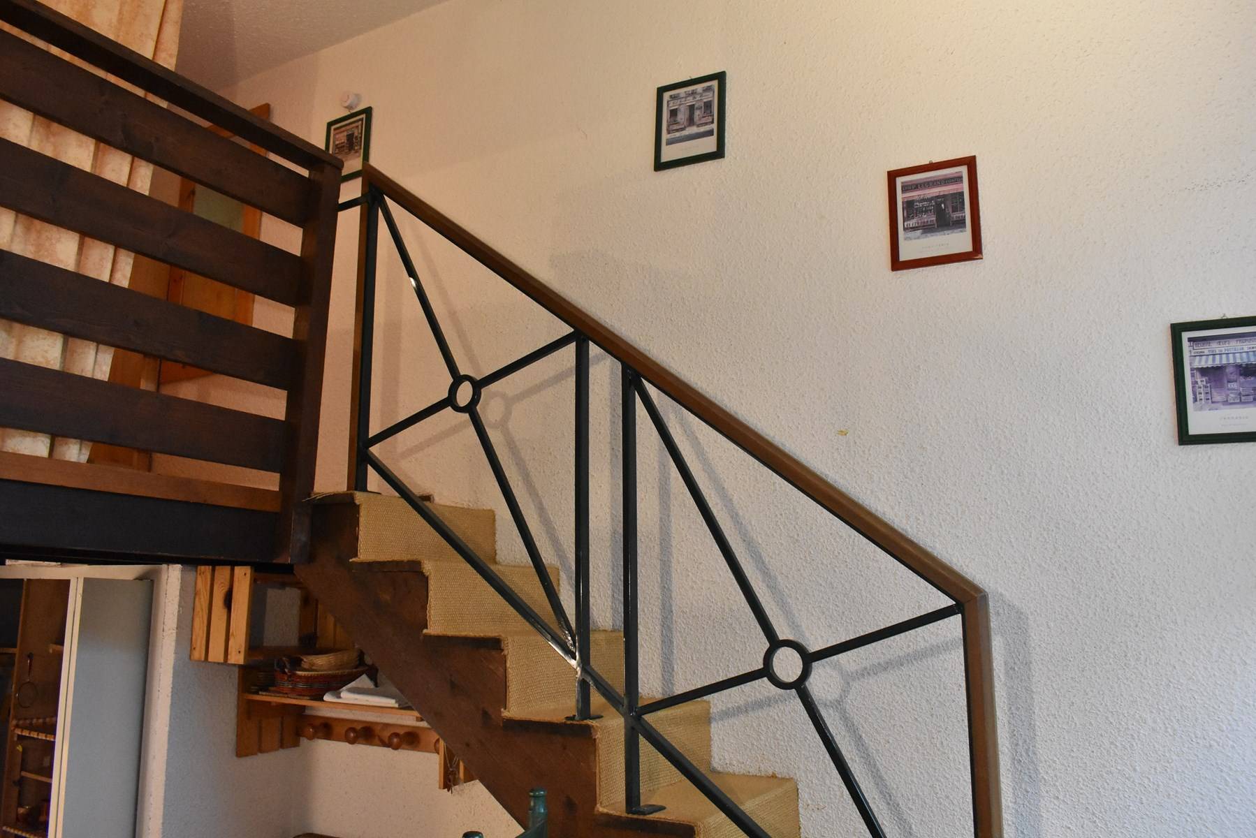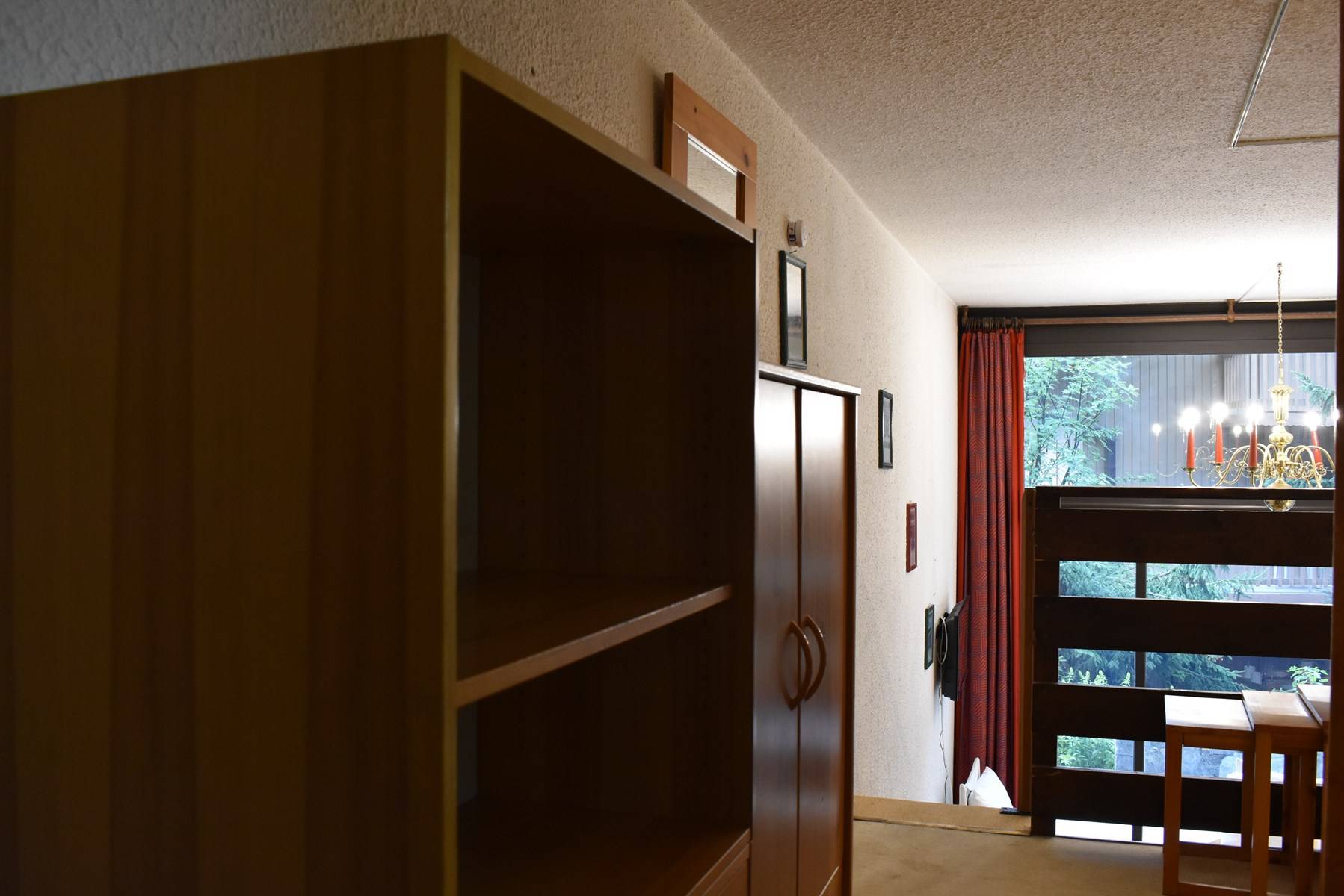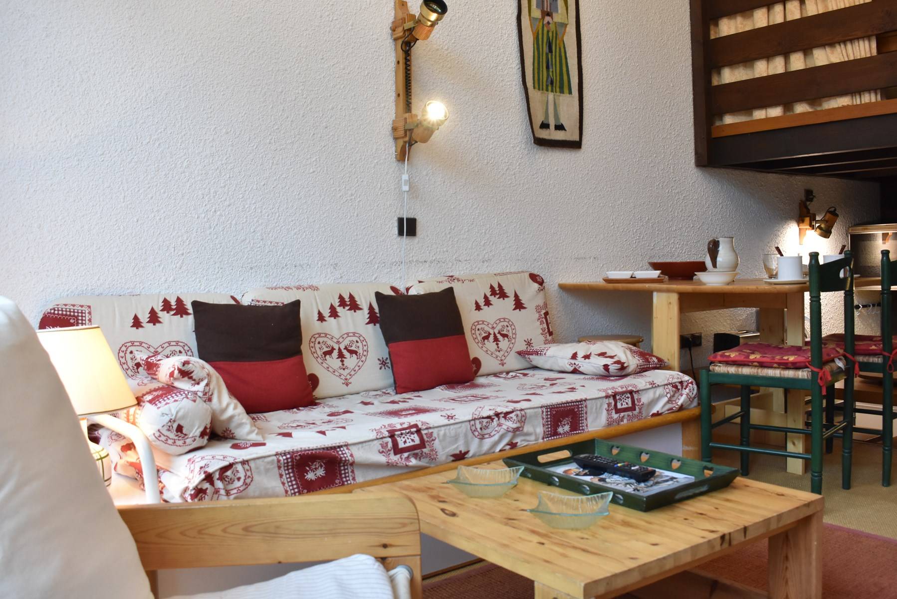 ( 5 étages à descendre sans ascenseur ) comprend une cuisine équipée ouverte sur un séjour/coin repas ( terrasse ouest) avec une télévision, une mezzanine avec un ensemble de lits superposés, une chambre ouverte sur la mezzanine avec 1 lit 2 personnes (160), une salle de douche avec wc, 1 casier à ski (C47).