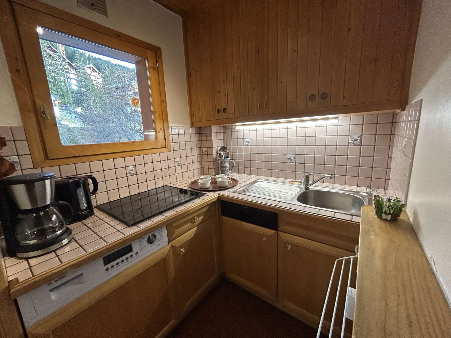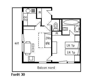 Cette location à la montagne, située au troisième étage par ascenseur, comprend une cuisine équipée avec lave-linge, un séjour télévision (balcon nord et est) avec un ensemble de deux lits gigognes relevables en 80 , une chambre 2 lits simples, une salle de bain et un wc indépendant, 1 casier à skis (RDC haut). Une place de parking près de la résidence est possible sous réserve d'une place disponible.