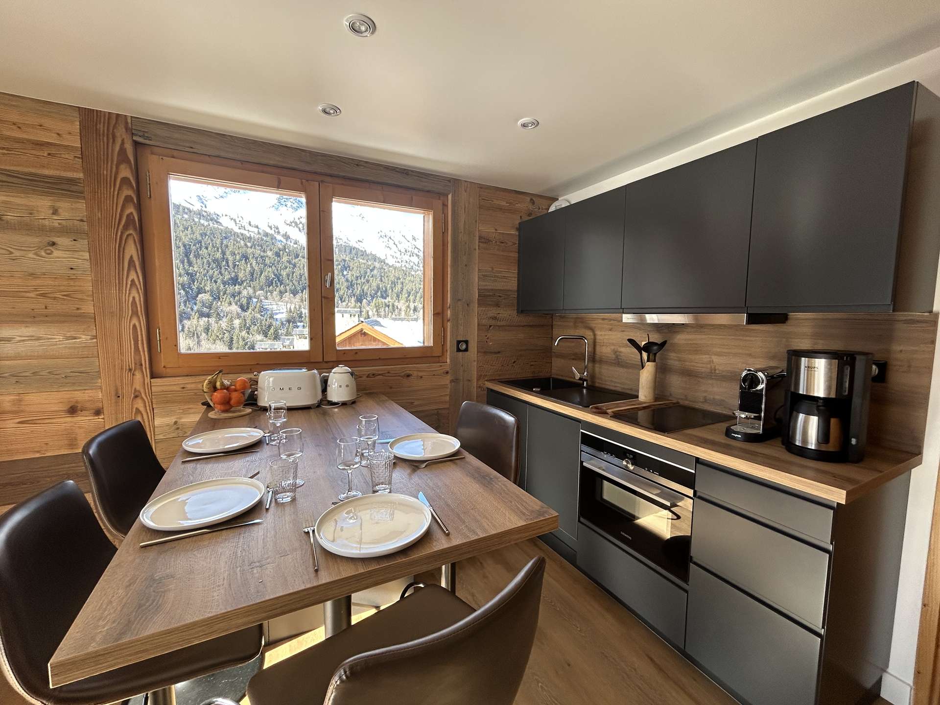 Ce bel appartement au style contemporain est situé au 2ème étage, avec ascenseur. Vous découvrirez une agréable pièce à vivre avec un balcon Sud, un salon avec un canapé et un espace repas très convivial disposant de la télévision. La cuisine au design moderne est très bien équipée et ouverte sur le séjour. Au niveau de l'entrée, vous disposerez d'une chambre avec 1 lit 140x190, une salle d'eau et des toilettes indépendantes. Dans l'entrée 1 ensemble de lits abattants simples en 80x190 très confortables. "Le couchage en hauteur est interdit aux enfants de moins de 6 ans". Un casier à skis n°4 au niveau de l'entrée.