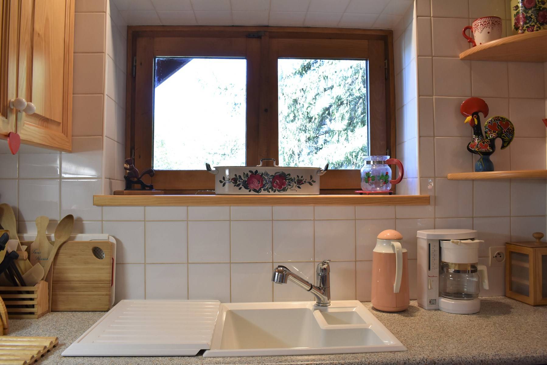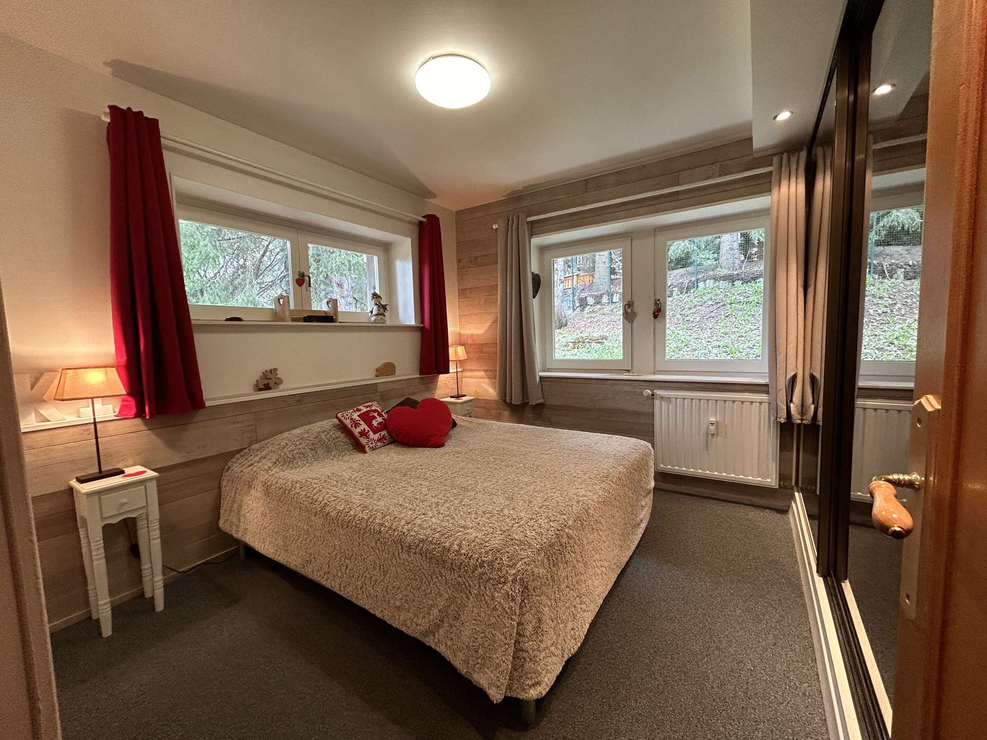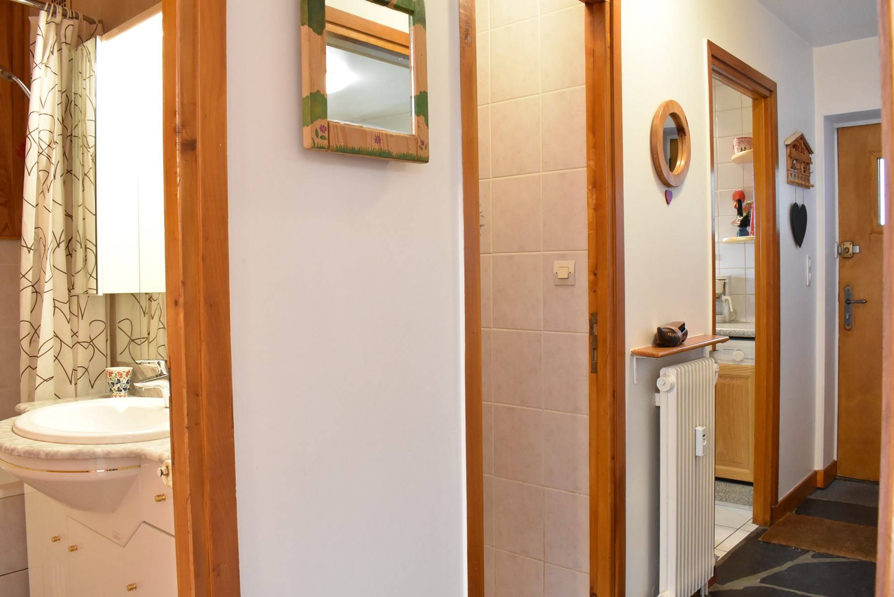Les plus de cette location à la montagne : une cheminée, un coffre fort, une terrasse en rez de jardin exposé Sud et un casier à ski ainsi que le wi-fi dans l'appartement.