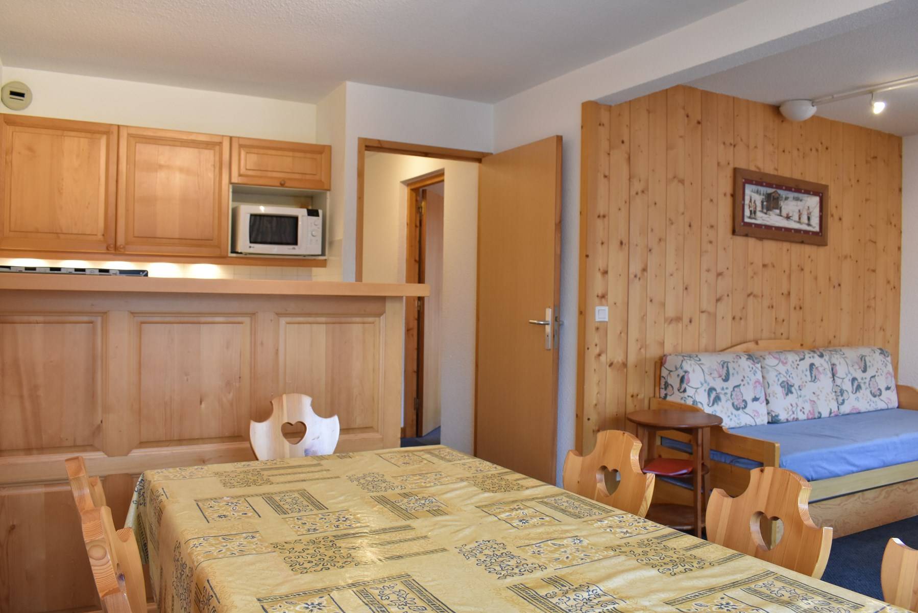 Cet appartement à la montagne situé au 2ème étage, avec ascenseur, comprend une cuisine équipée ouverte sur le séjour avec un coin repas et 1 salon avec un ensemble de lits gigognes relevables et 2 fauteuils donnant sur balcon Ouest, 1 chambre de 2 lits 1 personne avec balcon Sud, 1 chambre 2 lits 1 personne exposée Sud, 1 salle de bain, 1 salle d'eau avec WC et 1 WC indépendant.