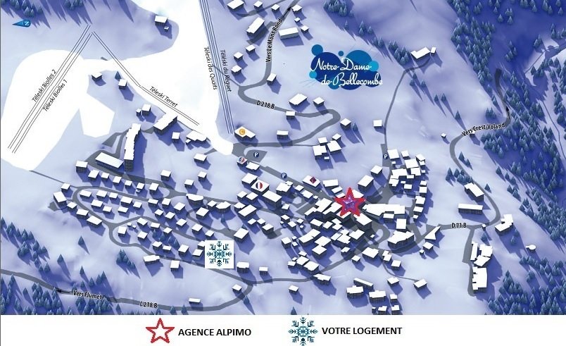 Le centre du village et ses commerces se situent à 400 mètres du logement. Le front de neige et l'école de ski sont à 600 mètres à pied ou en navette.
