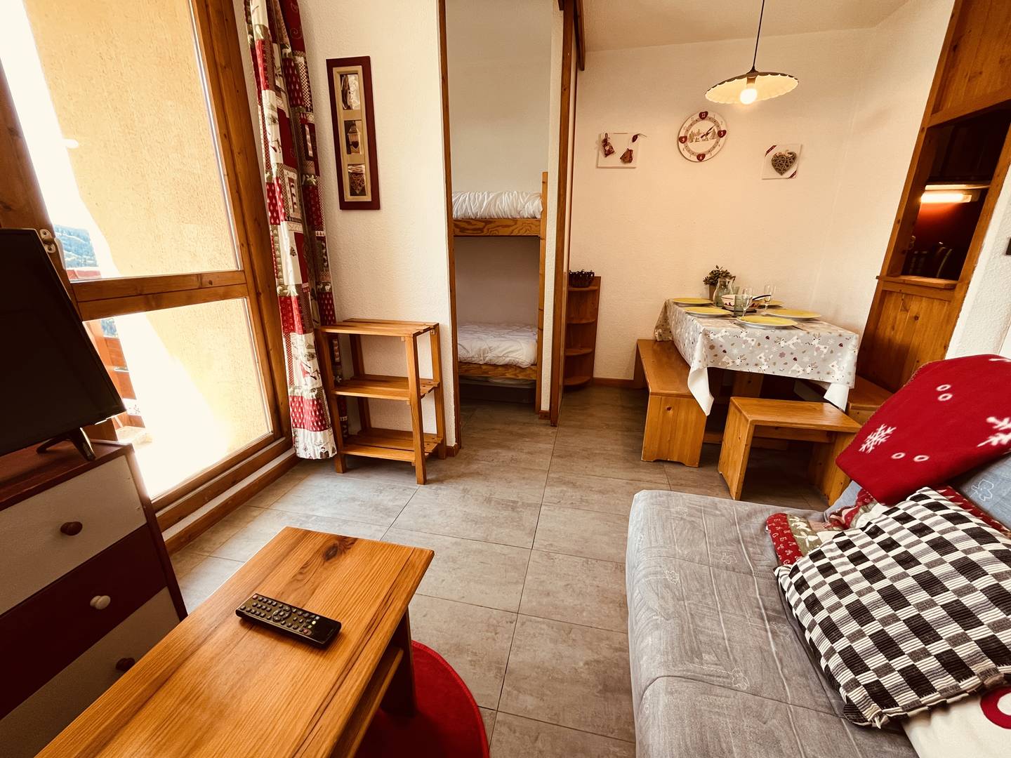 Studio pour 4 personnes de 20 m², situé au 3ème étage avec balcon (niveau -2 par rapport à l'entrée haute de la résidence), sans ascenseur, en exposition Sud-ouest et bénéficiant de la proximité du centre de la station et des pistes