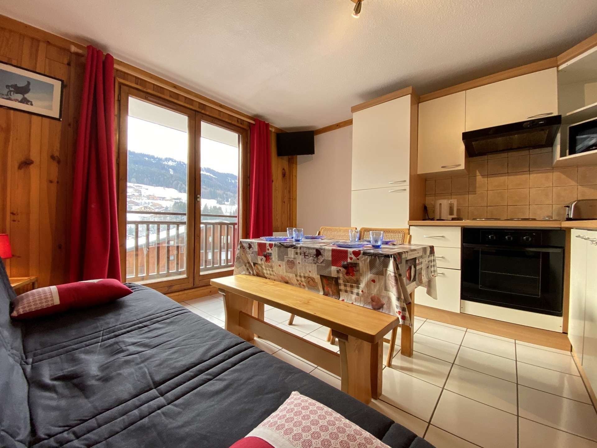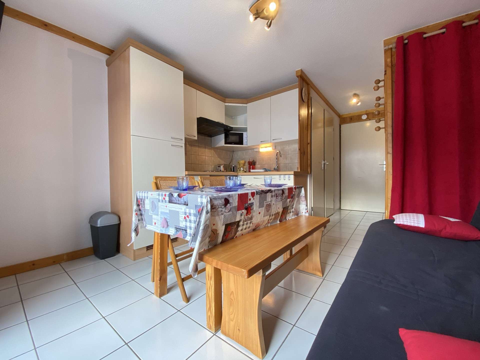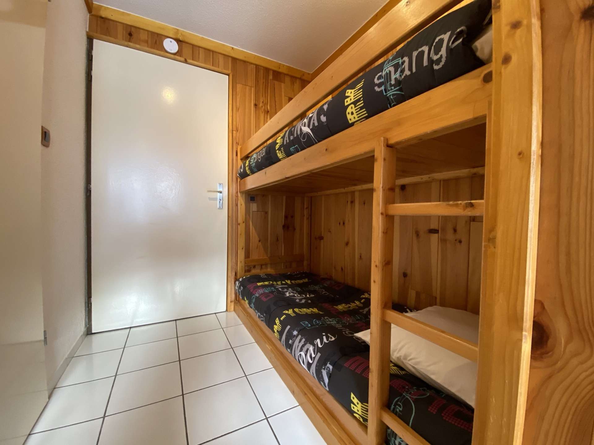 Cet appartement de vacances, situé au 3ème étage de la résidence, comprend un séjour avec un canapé lit deux places, une cuisine équipée, un coin cabine avec un lit superposé 2 couchages, une salle de bains avec baignoire et un WC indépendant.