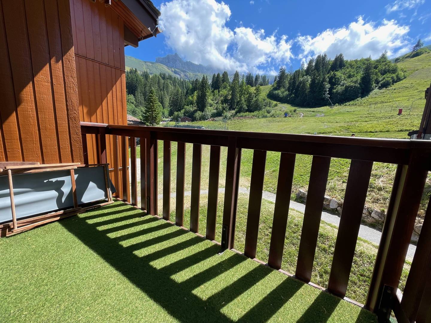 - Balcon exposé sud avec vue sur les pistes et montagne.