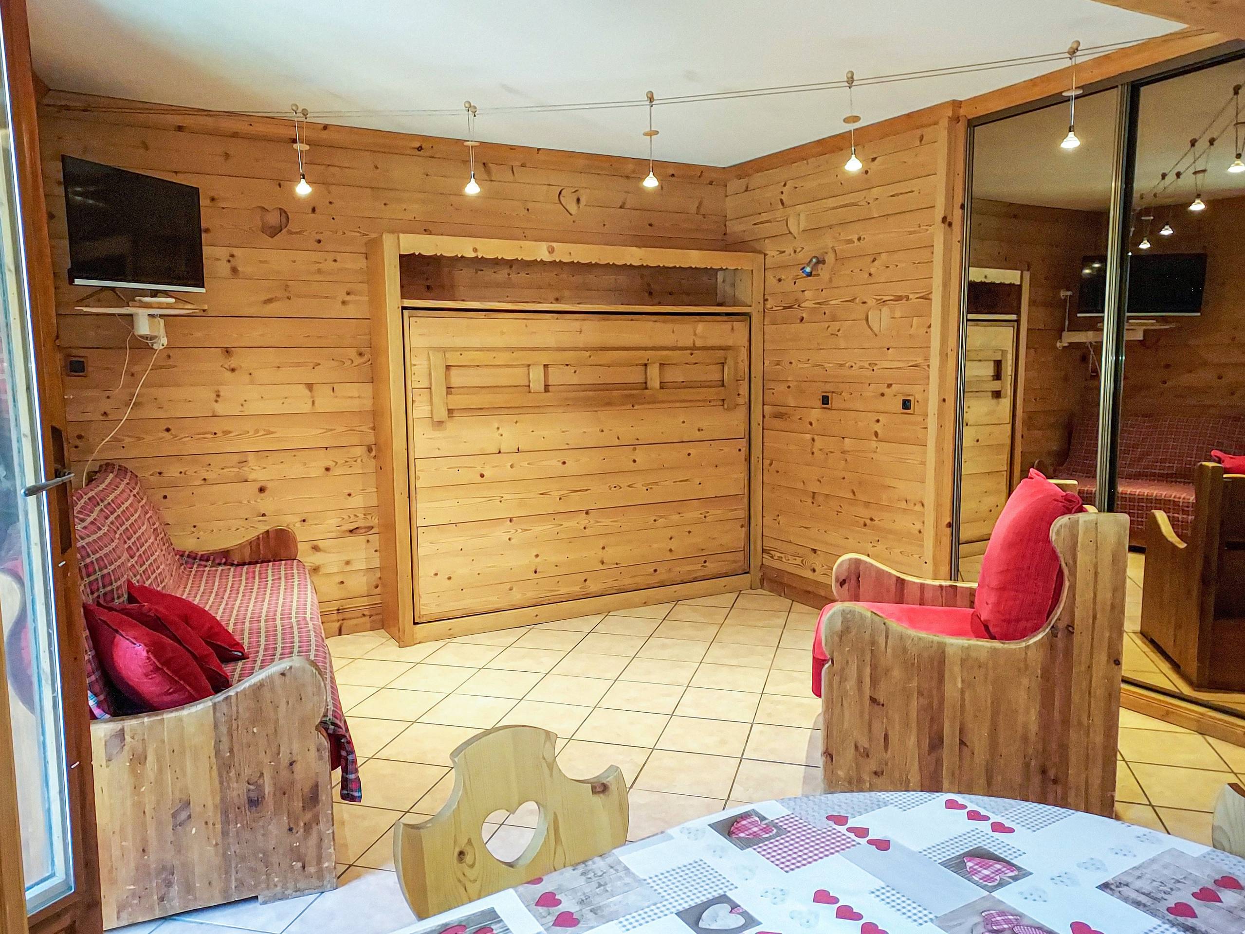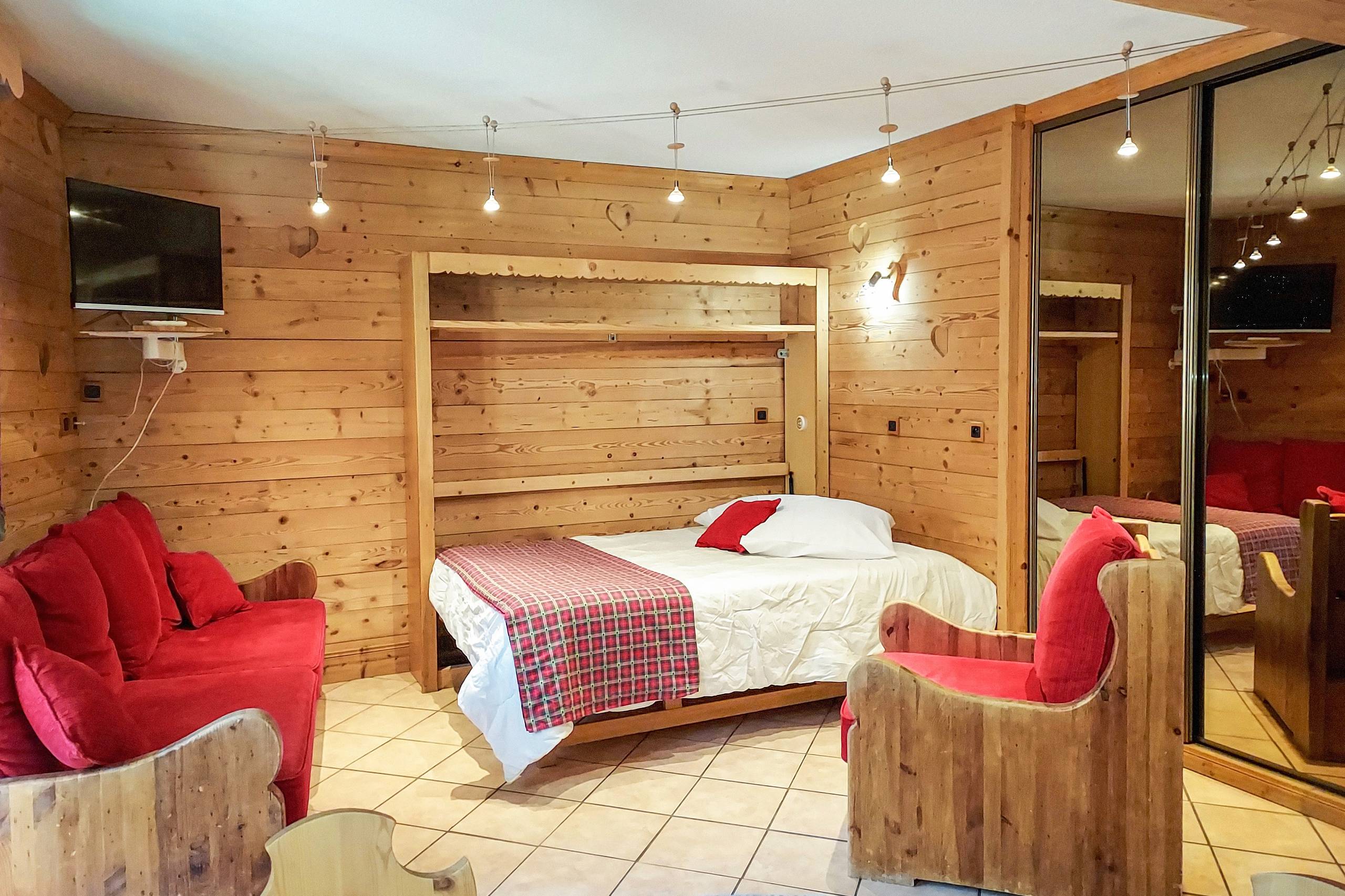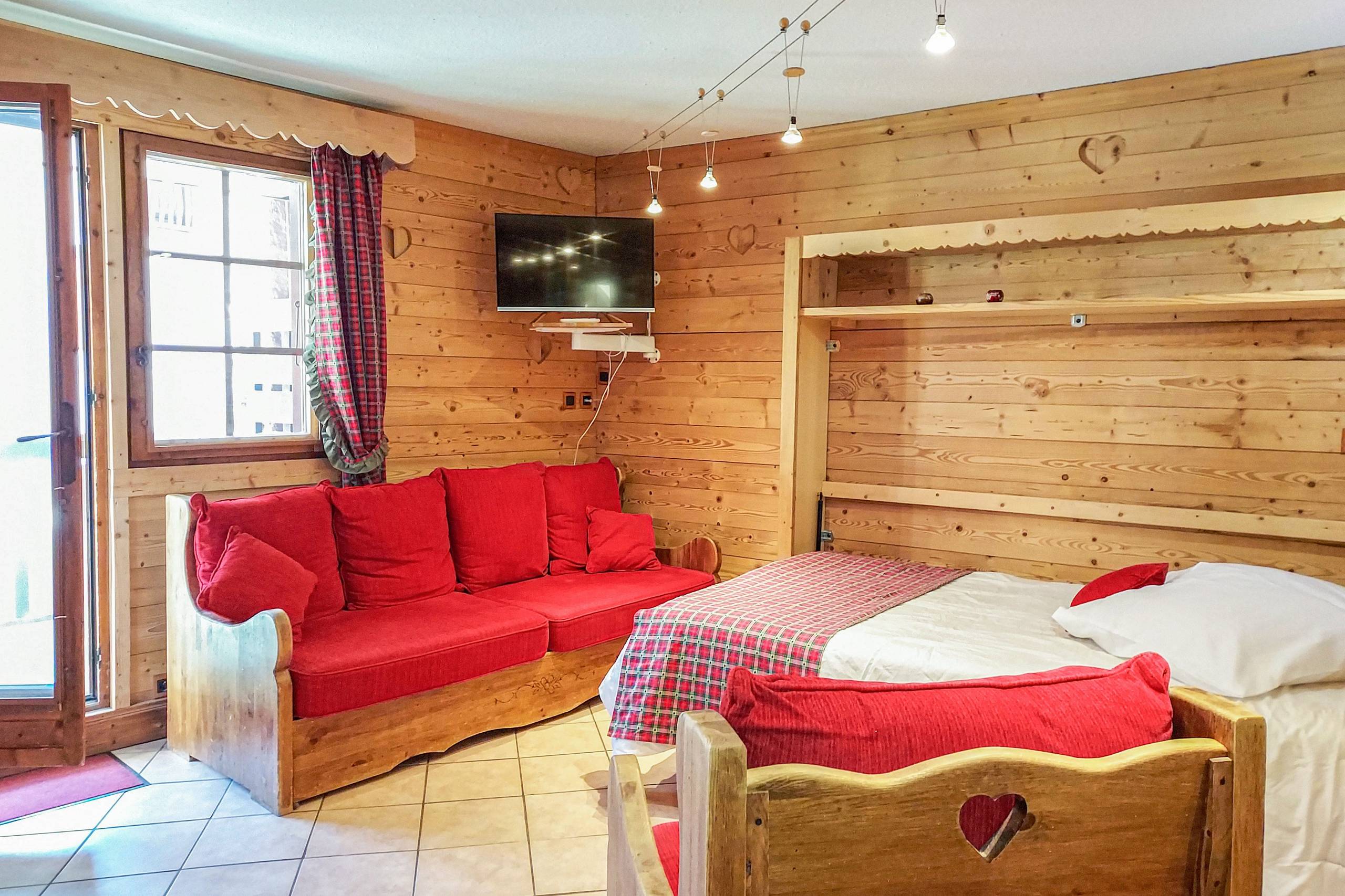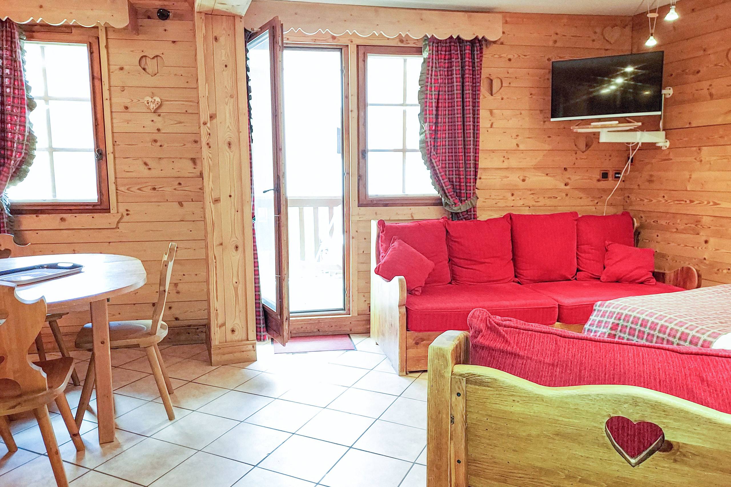 - Séjour équipé d’un lit rabattable (2 personnes. 140x190cm), et d’une banquette. TV