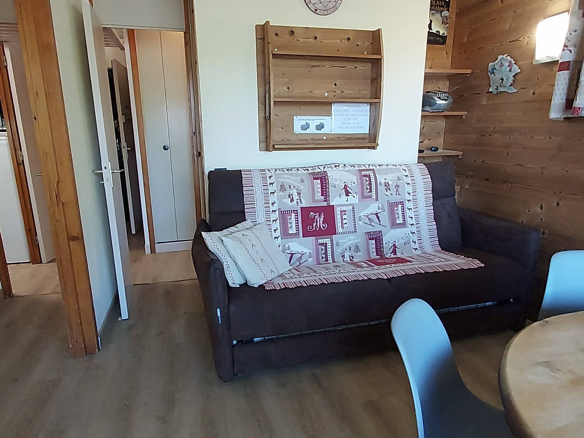 - Grand séjour divisible avec un canapé rapido de 160 et espace repas. Coté salon un lit simple 90 et son lit gigogne de 90.