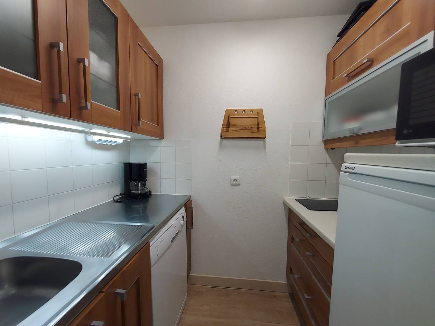 - Cuisine indépendante avec lave-vaisselle, four micro-ondes, 2 plaques électriques et grand réfrigérateur freezer.