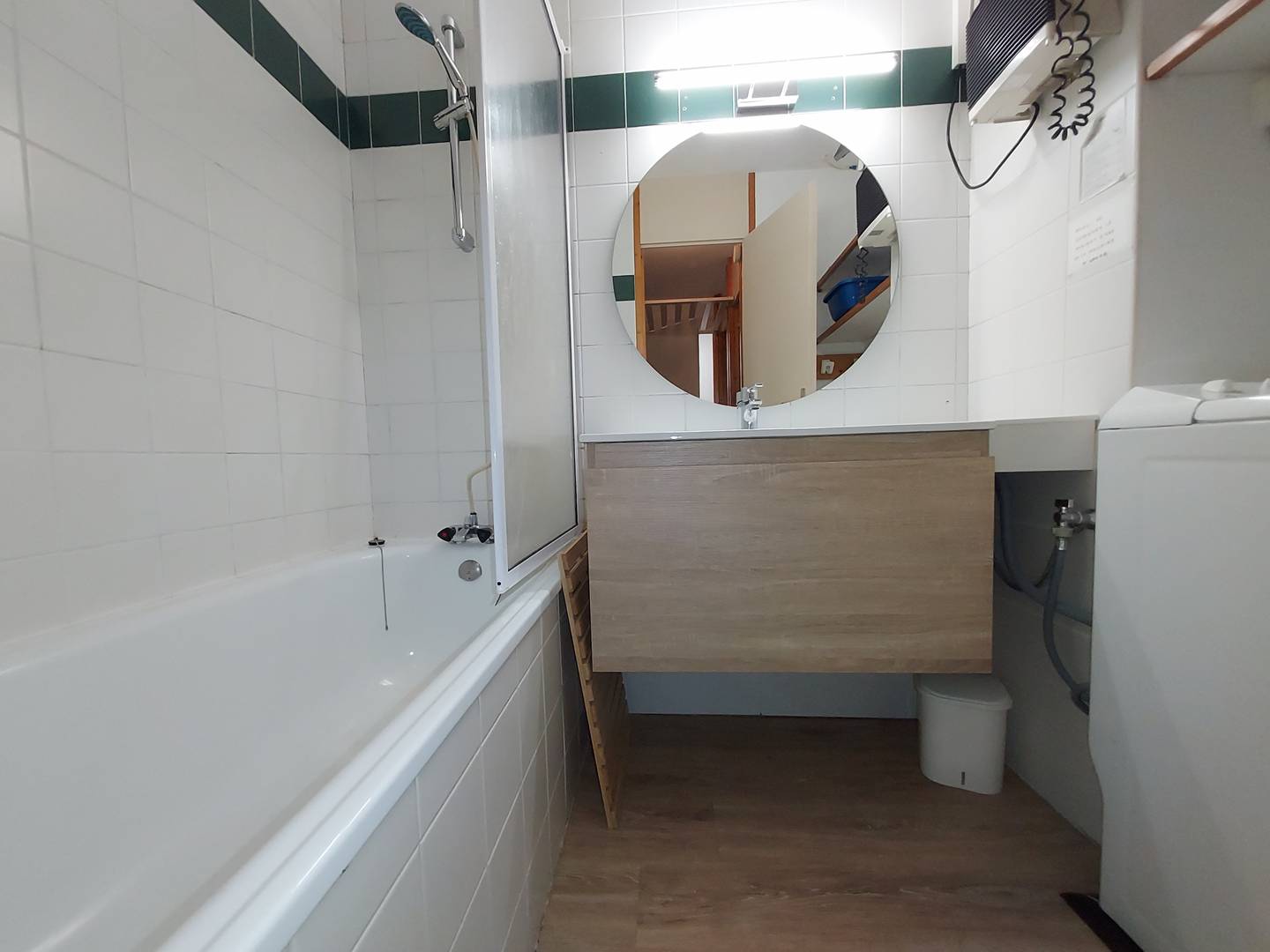 Salle de bains avec baignoire et lave linge , toilettes indépendantes, terrasse sur pistes.