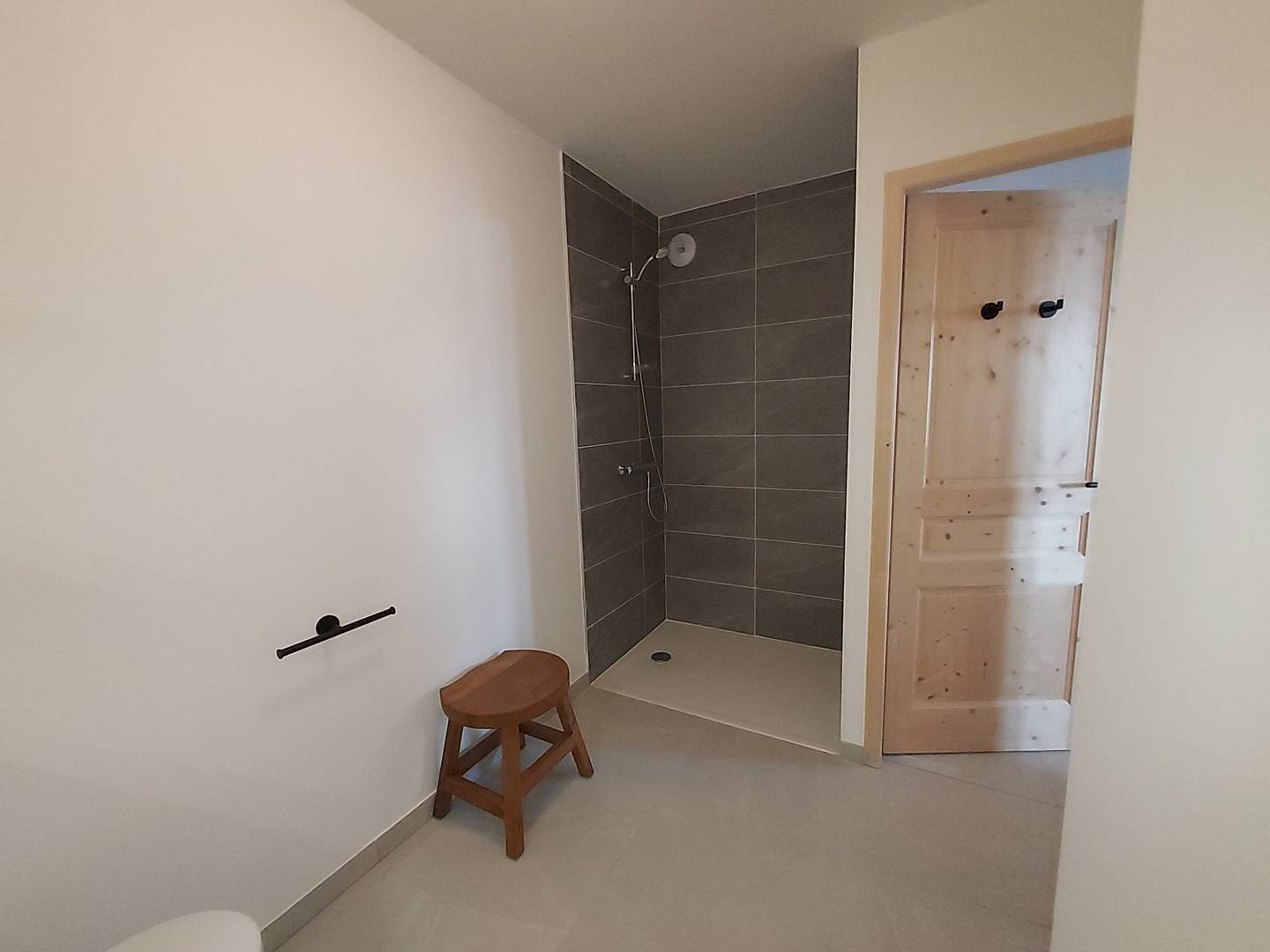 Une salle de douche, avec WC.