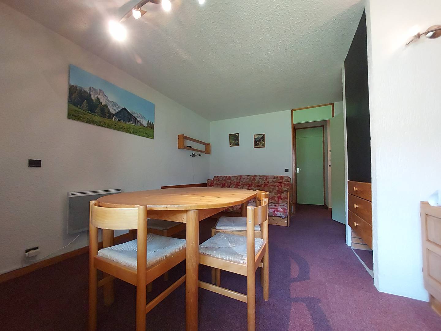 - Séjour équipé d’un canapé-lit (2 personnes. 140 x 190 cm) et TV