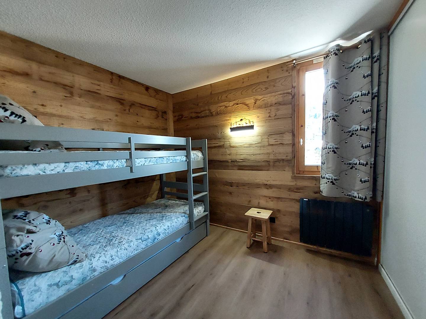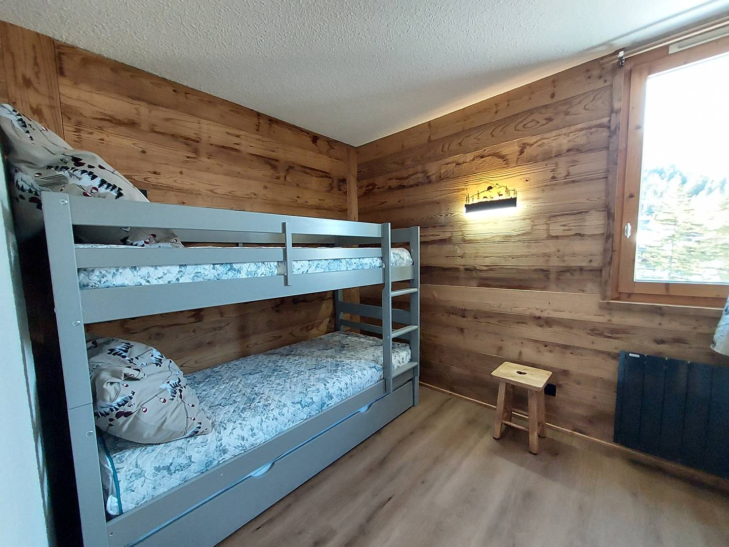 - Chambre 2 avec un ensemble de lits superposés et un lit gigogne .