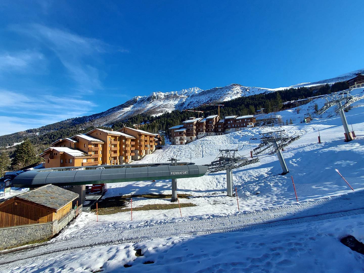 Les Roches Blanches: Charmante résidence de pierres et de bois située en bordure de piste. Le départ ski se fait par la nouvelle télécabine de Pierrafort. L'accès au départ des cours ESF se fait soit à pied en moins de 5 minutes, soit par le Télébourg qui permet également de rejoindre le centre station. Les commerces sont à 100 mètres. Le stationnement (payant) est possible devant la résidence.